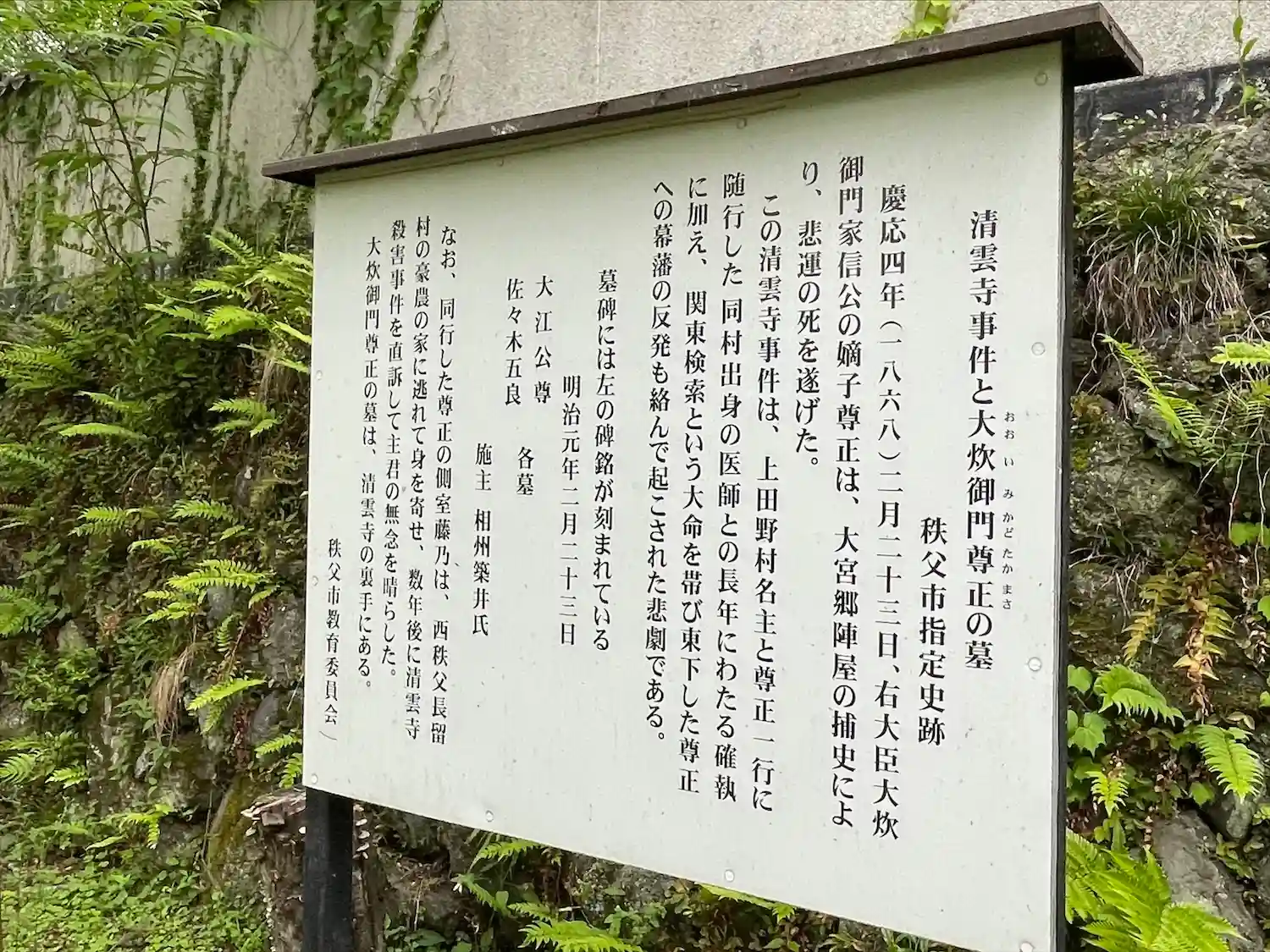 【清雲寺事件と大炊御門尊正の墓】の説明板です。