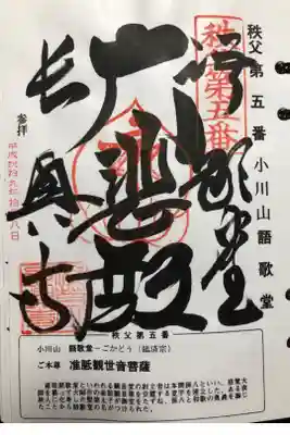 秩父三十四所観音霊場第五番 語歌堂の御朱印です。