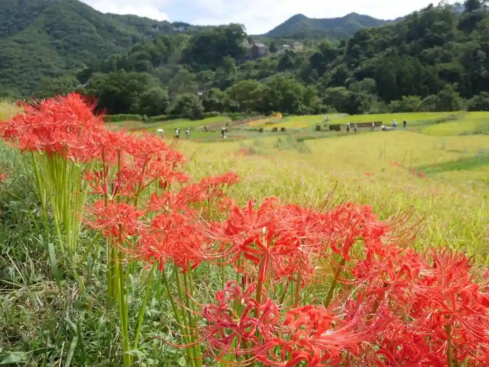 西武秩父線の横瀬駅から一番近い九番札所の明智寺にまずお参り。こじんまりとしたお寺でした。次の札所に向かう途中で、少し遠回りになるのですが、ヒガンバナの名所だという寺坂棚田に寄ってみました。巾着田のように密集して咲いているわけではありませんが、正面に武甲山を望む、のんびりとした風景の中で、赤い花がひときわ鮮やかでした。