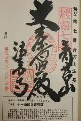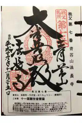埼玉県秩父市の法長寺の御朱印です。
