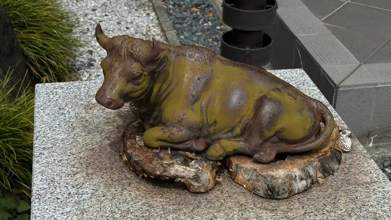本堂正面左側にある<撫で牛>。