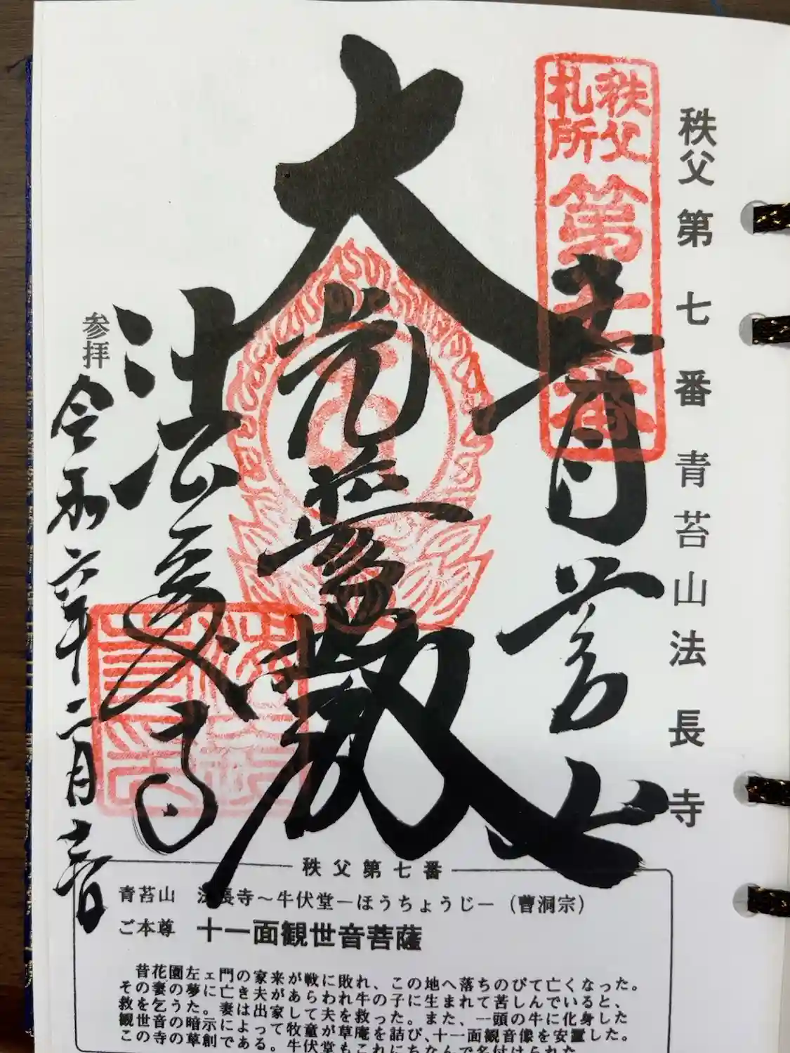 埼玉県秩父市の法長寺の御朱印です。
