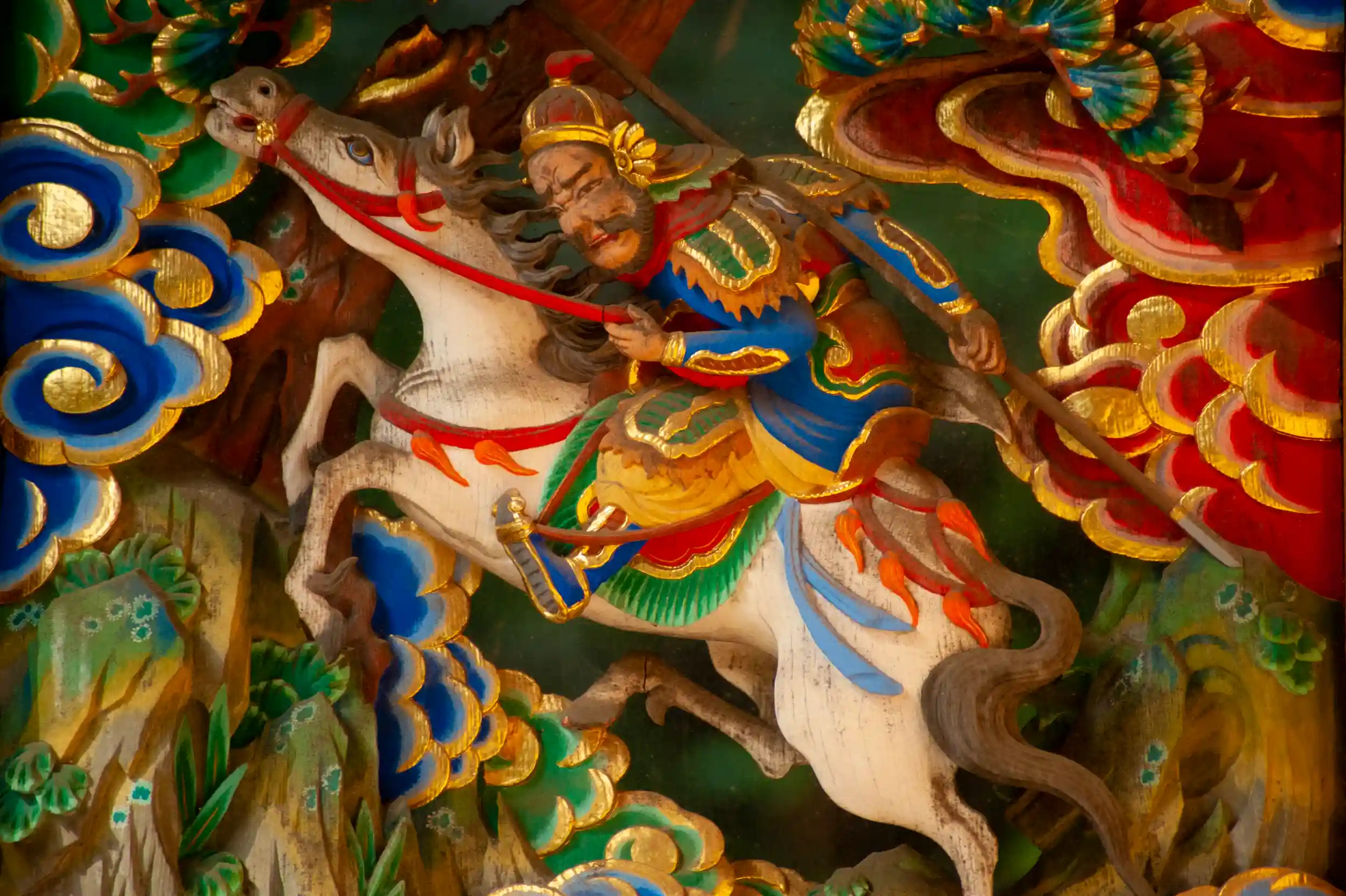 社殿を取り巻く極彩色の彫刻は、とても迫力があり息を呑みます。