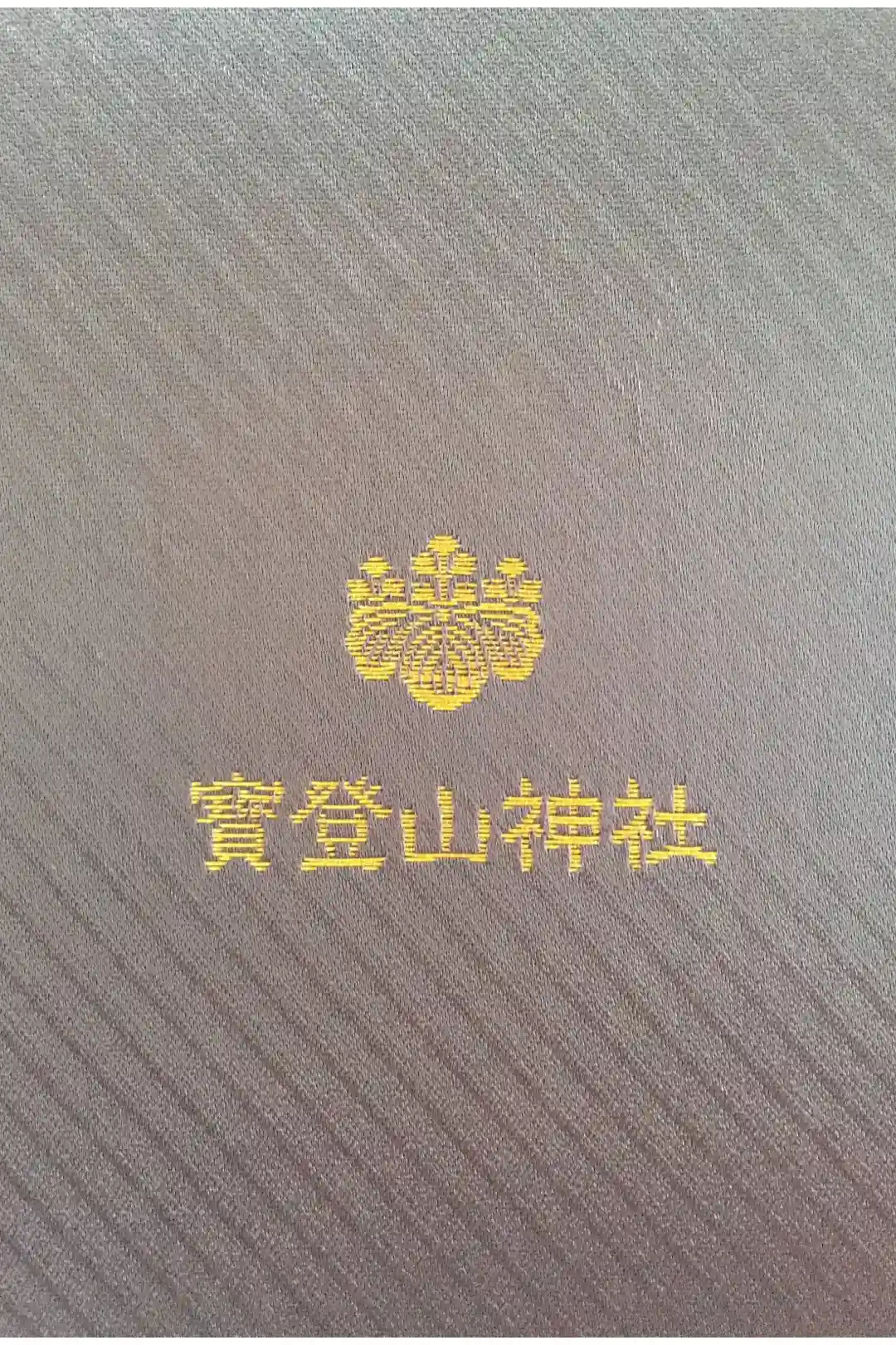 長瀞は、岩畳や川下りでも有名です。濃い紫色の地に、川の流れや桜の花の刺繍があしらわれ、金色の文字で「御朱印帳」とあります。