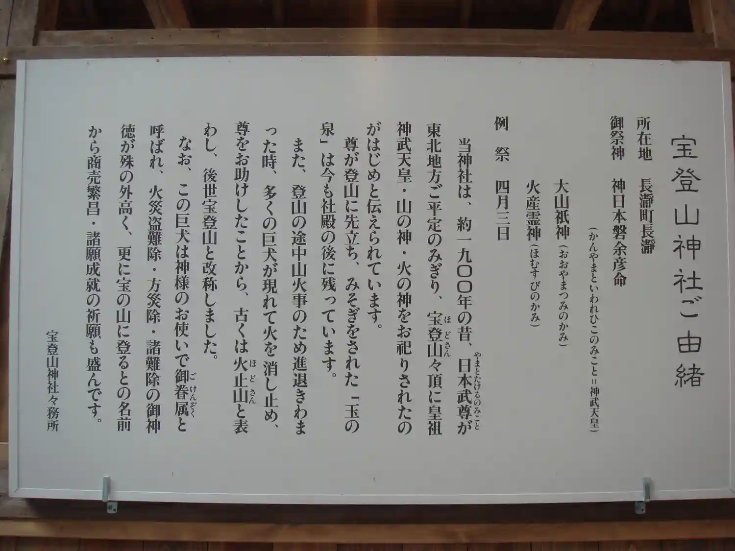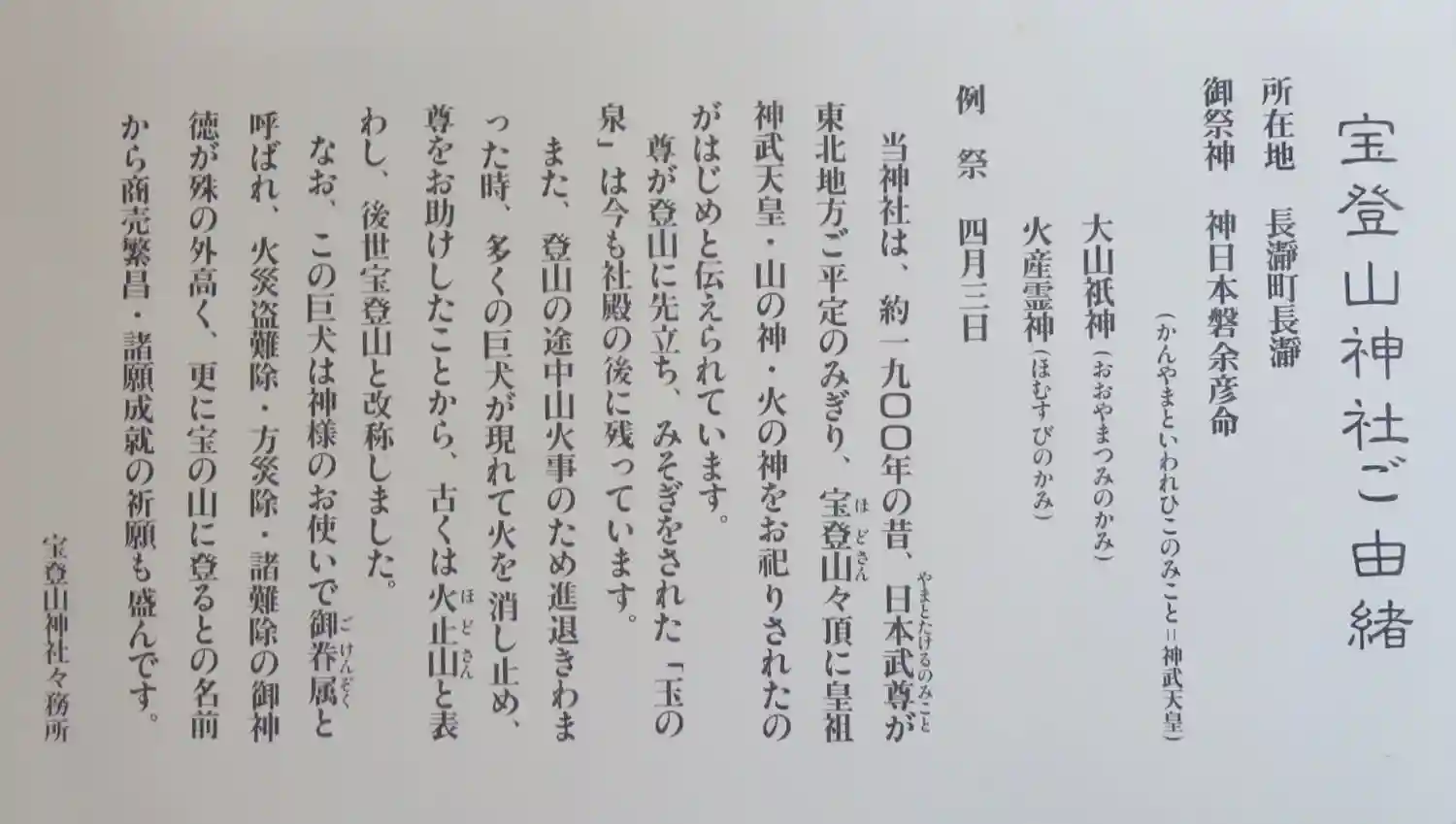 | ご祭神 | 神日本磐余彦尊/大山祇神/火産霊神 | |