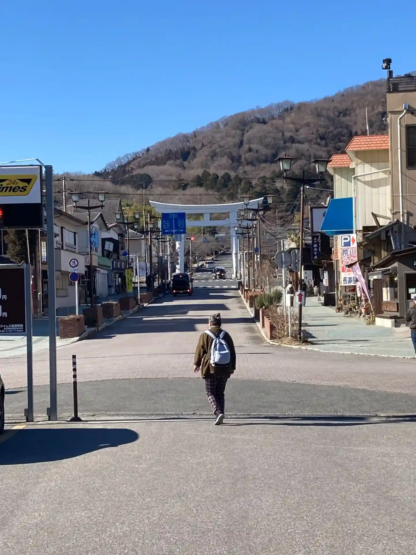 駅前のシャトルバス発着場付近から一の鳥居を臨む