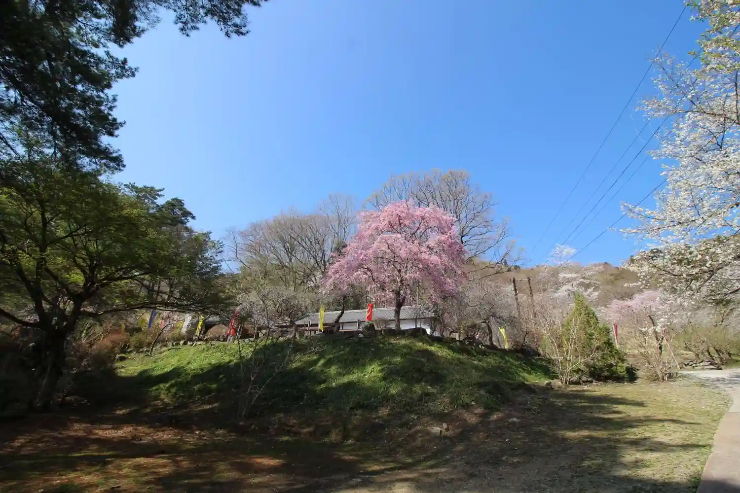 長瀞の宝登山の麓にある「長瀞山不動寺」です。「通り抜けの桜」がきれいでした。八重桜系の品種が30種…