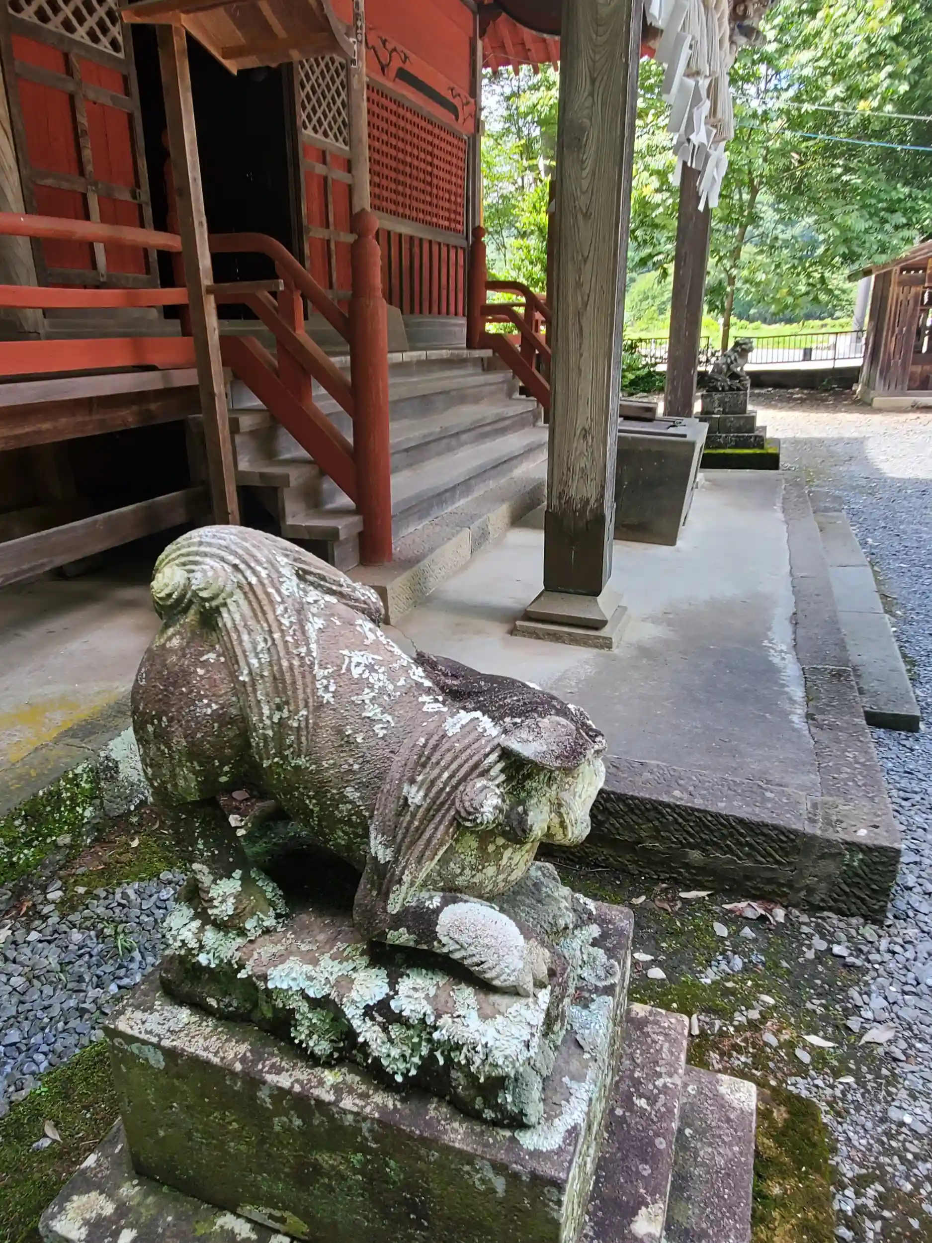 山犬の他に普通の狛犬もあったんですが、面白いことにここのは左右でポーズが大きく違う