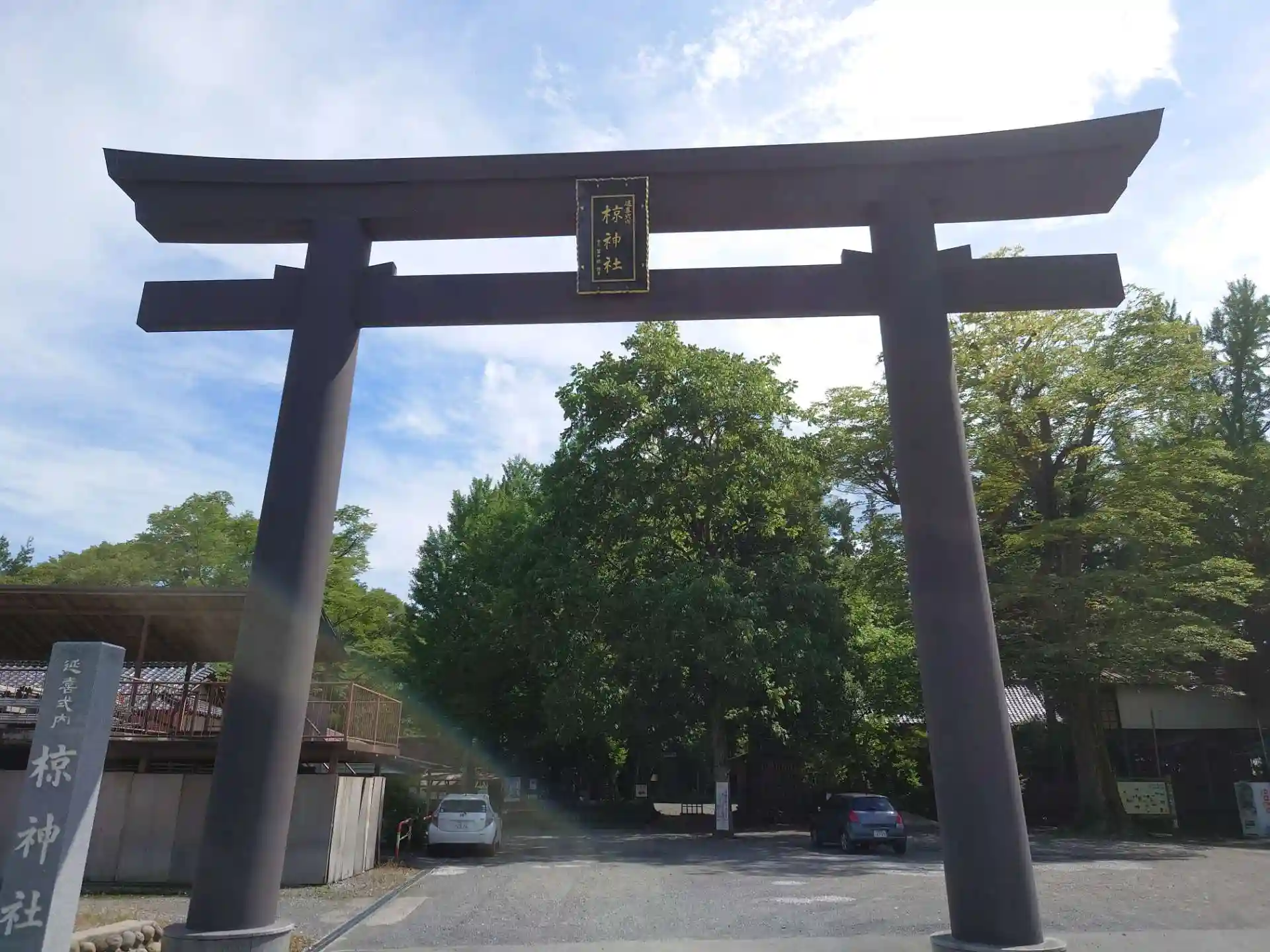欲を出してもう一つの式内論社の椋神社に参拝しました。細い道を抜け石段の有る鳥居ではなく、新しく作られたであろう大きな鳥居側に駐車して参拝。石段上の狛犬は狼だと思われます。灯籠も古く歴史を感じさせます。非常に雰囲気の良い神社でした。社務所は開いていたのですが、時間前なのに終了の張り紙。窓も扉も開けっ放し、人の気配無く無用心でしたが、ある意味平和な町なんだな〜