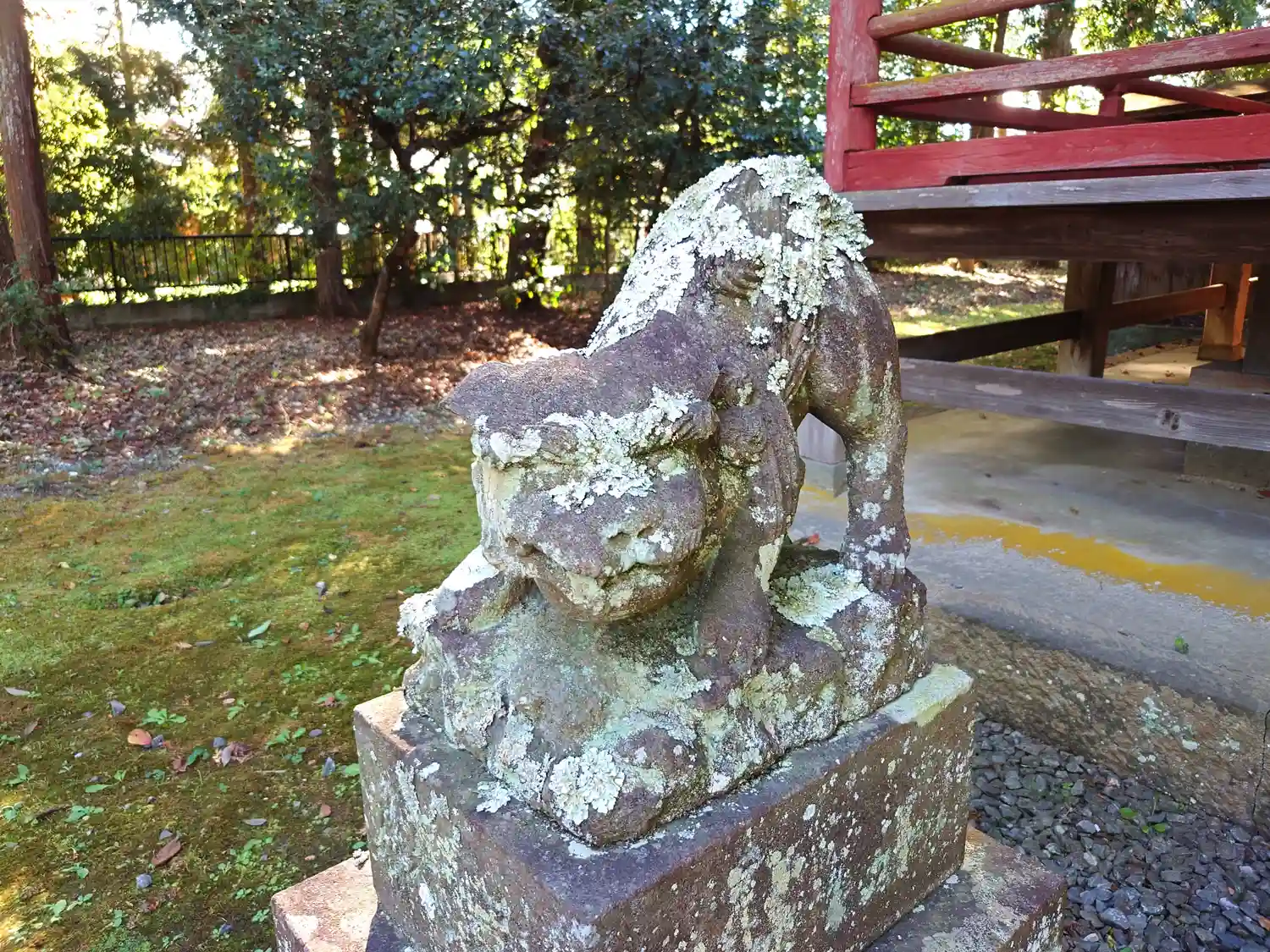 拝殿前のかなり古そうな狛犬