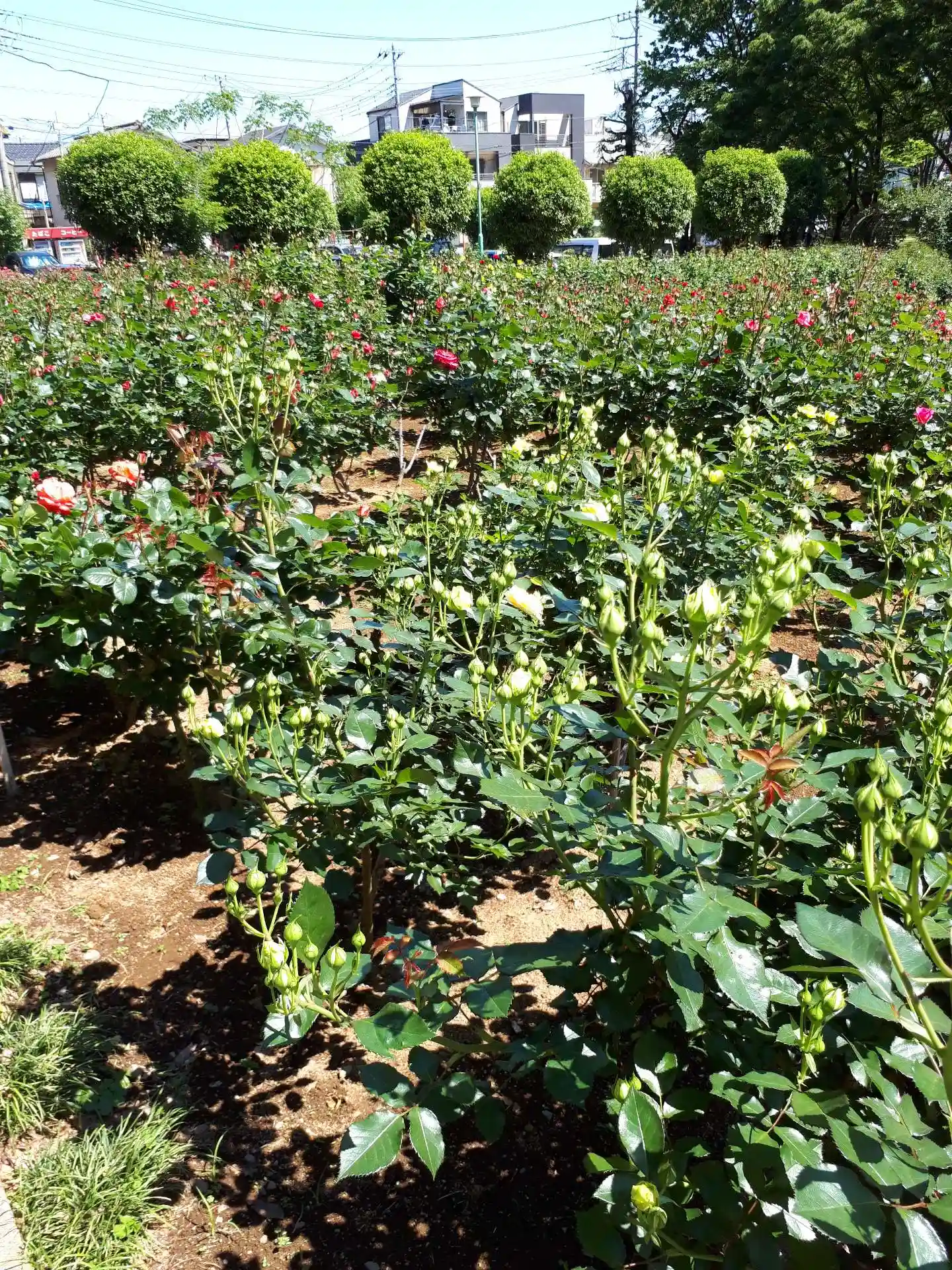 入り口にあるバラ園は、まだあまり咲いていませんでした。