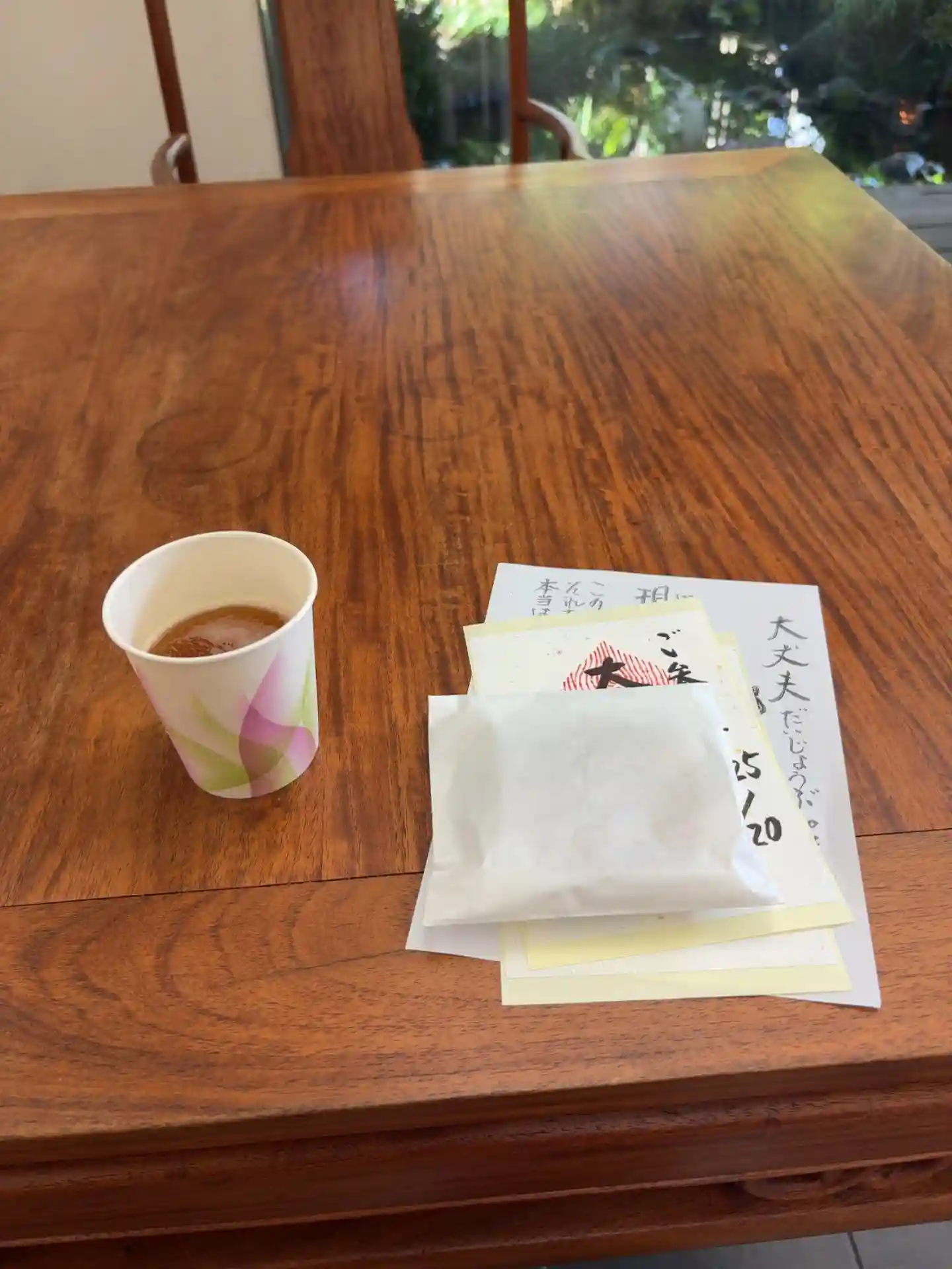 頂いたお菓子と給茶器の麦茶を頂きました。