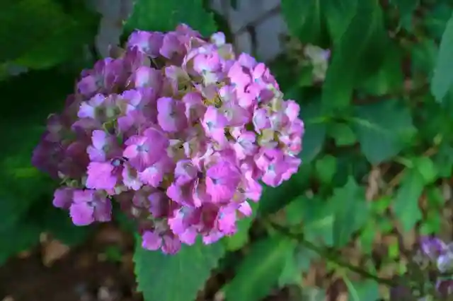 朝陽を浴びてキラキラしていたガクアジサイ。