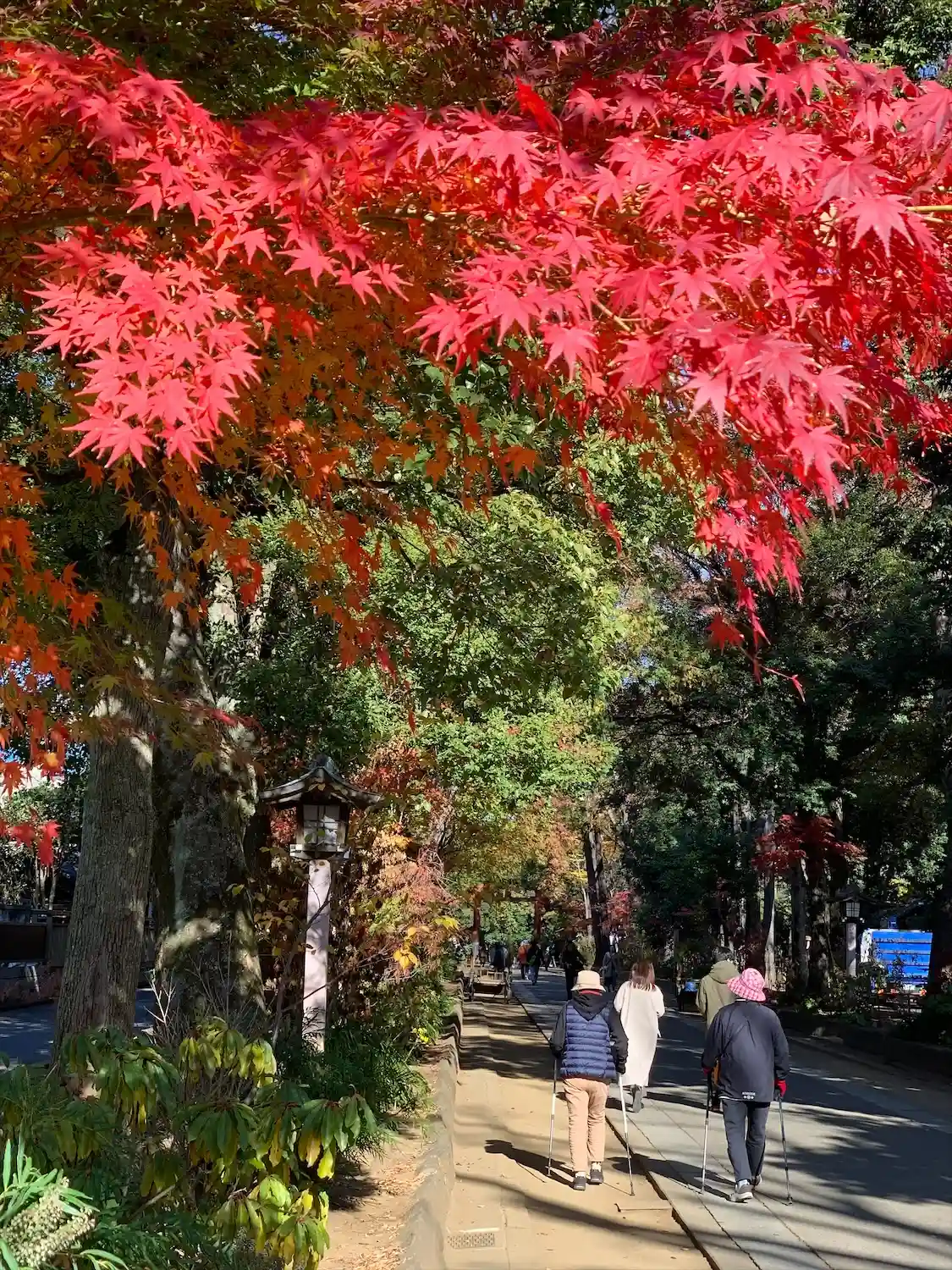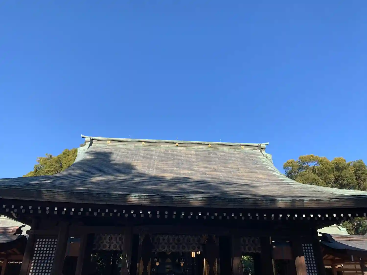 The approach to Hikawa Shrine is 2 kilometers long in the north-south direction, starting at the old main road. The approach is lined with about 650 tall trees of approximately 40 variations, such as Japanese elm, chinquapin, and Japanese hackberry. The approach to Hikawa Shrine has three large entrance gates, which are called Ichi-no-Torii (the first gate), Ni-no-Torii (the second gate) and San-no-Torii (the third gate) in the order of distance from the shrine building. Meiji Jingu in Tokyo donated Ni-no-Torii, which was reconstructed at Hikawa Shrine. It is one of the highest torii among the existing wooden gates at 13 meters.