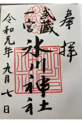 初氷川神社御朱印❗️