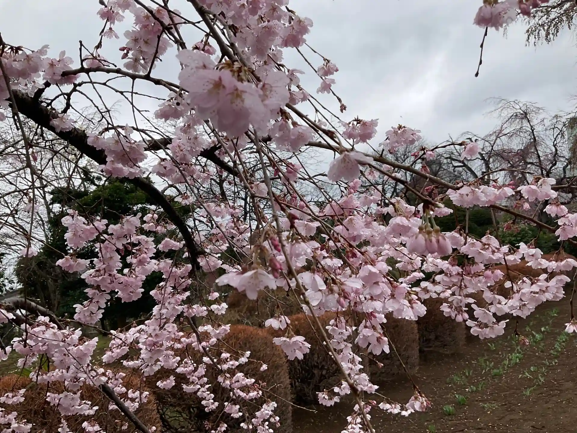 この日時より雨降り予報で肌寒でしたが、しだれ桜が見頃を迎えました。