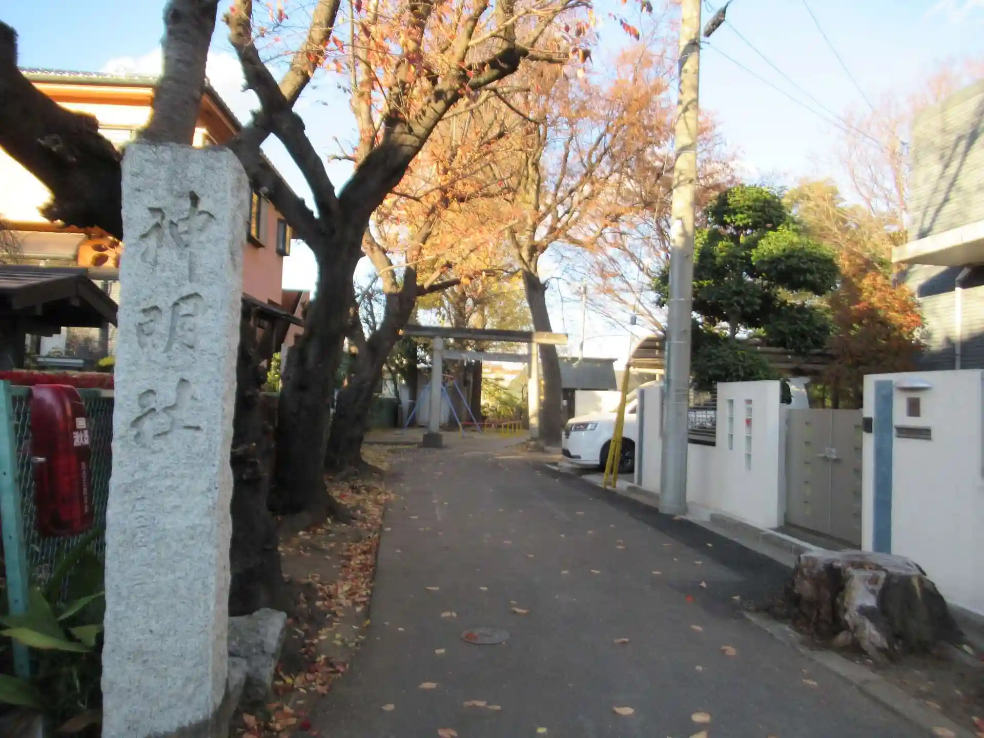 住宅地の中に建つ、境内が公園になっている神社です。