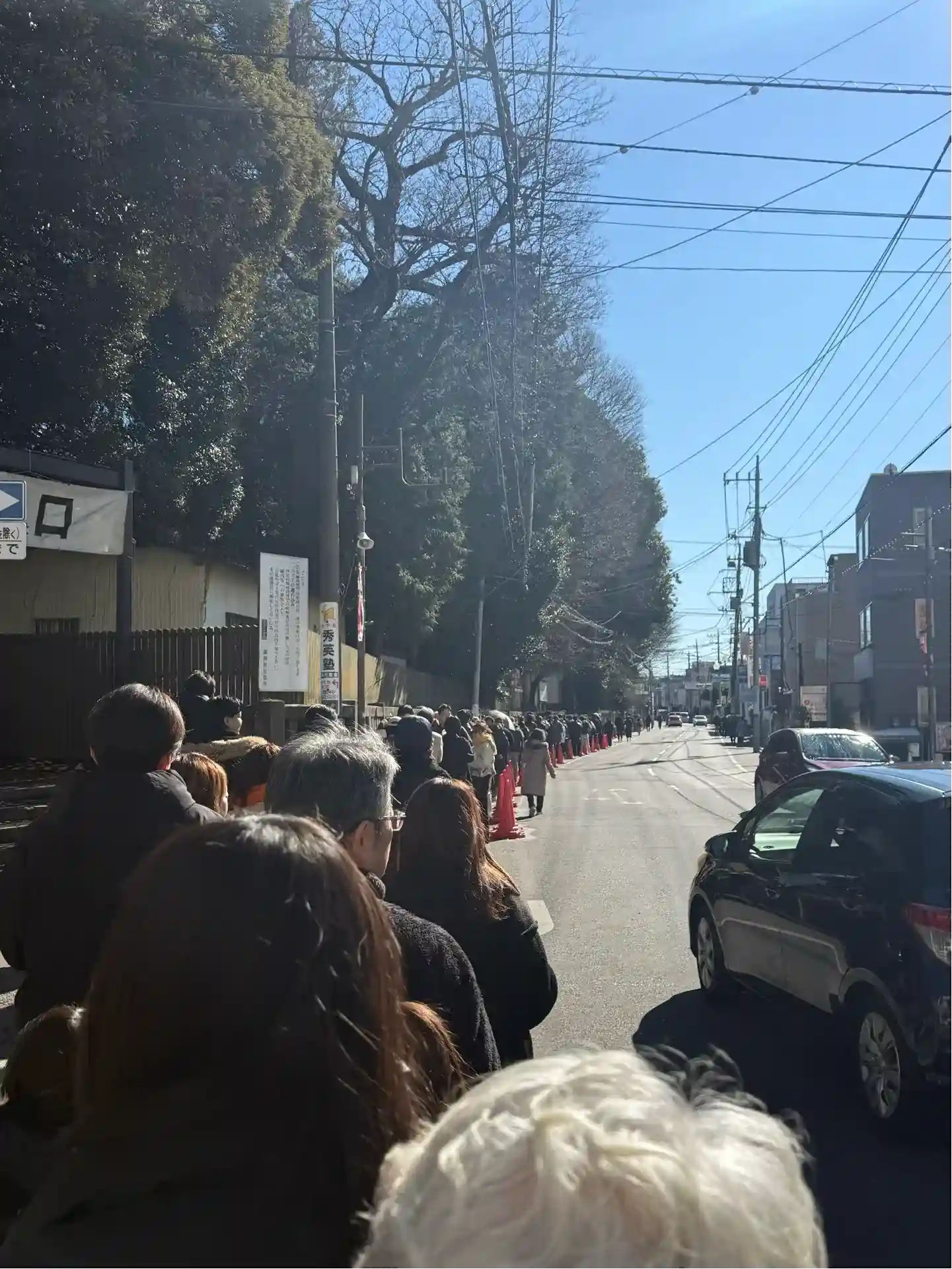 神社に入る前の道路に長蛇の列