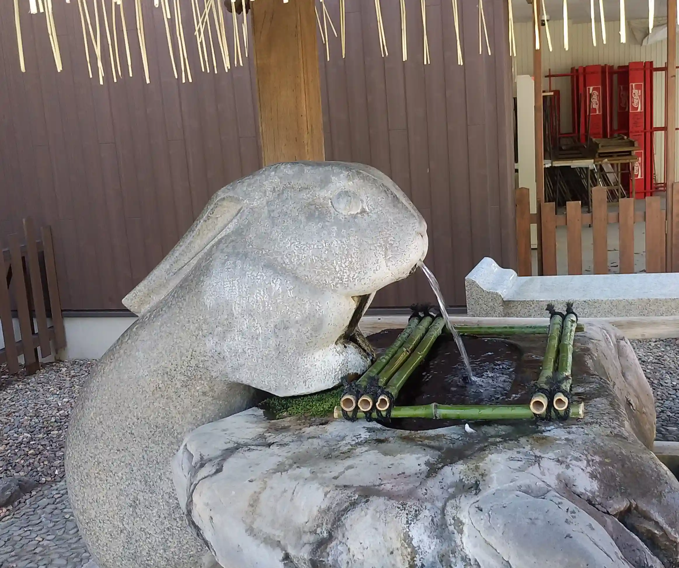 手水舎の柄杓はコロナの影響で撤去されています。