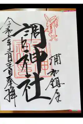 調(つき)神社の神使『兎』の印がかわいらしい御朱印です。 ※御朱印の授与は令和7年3月31日をもって終了しました。 | |||