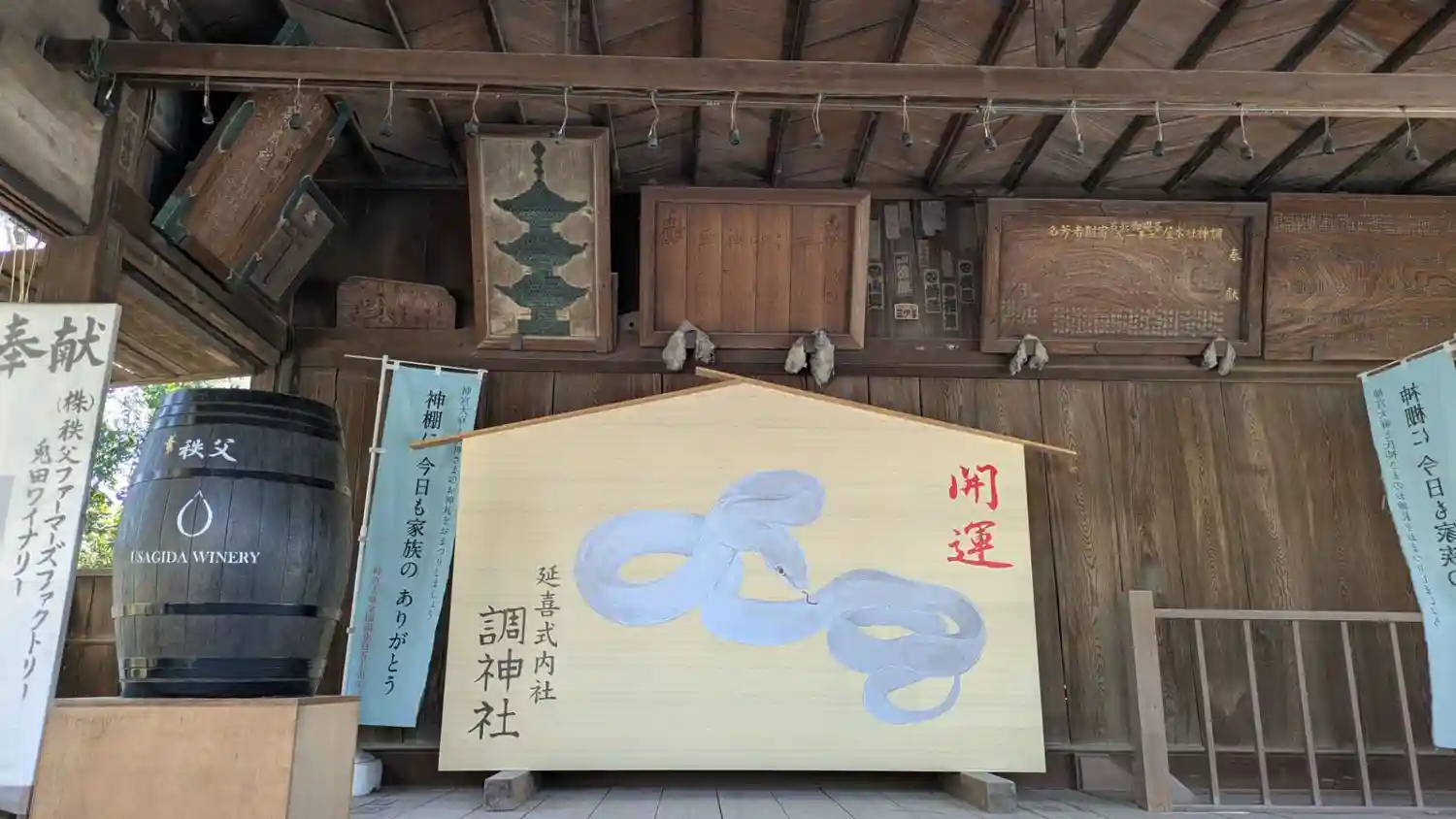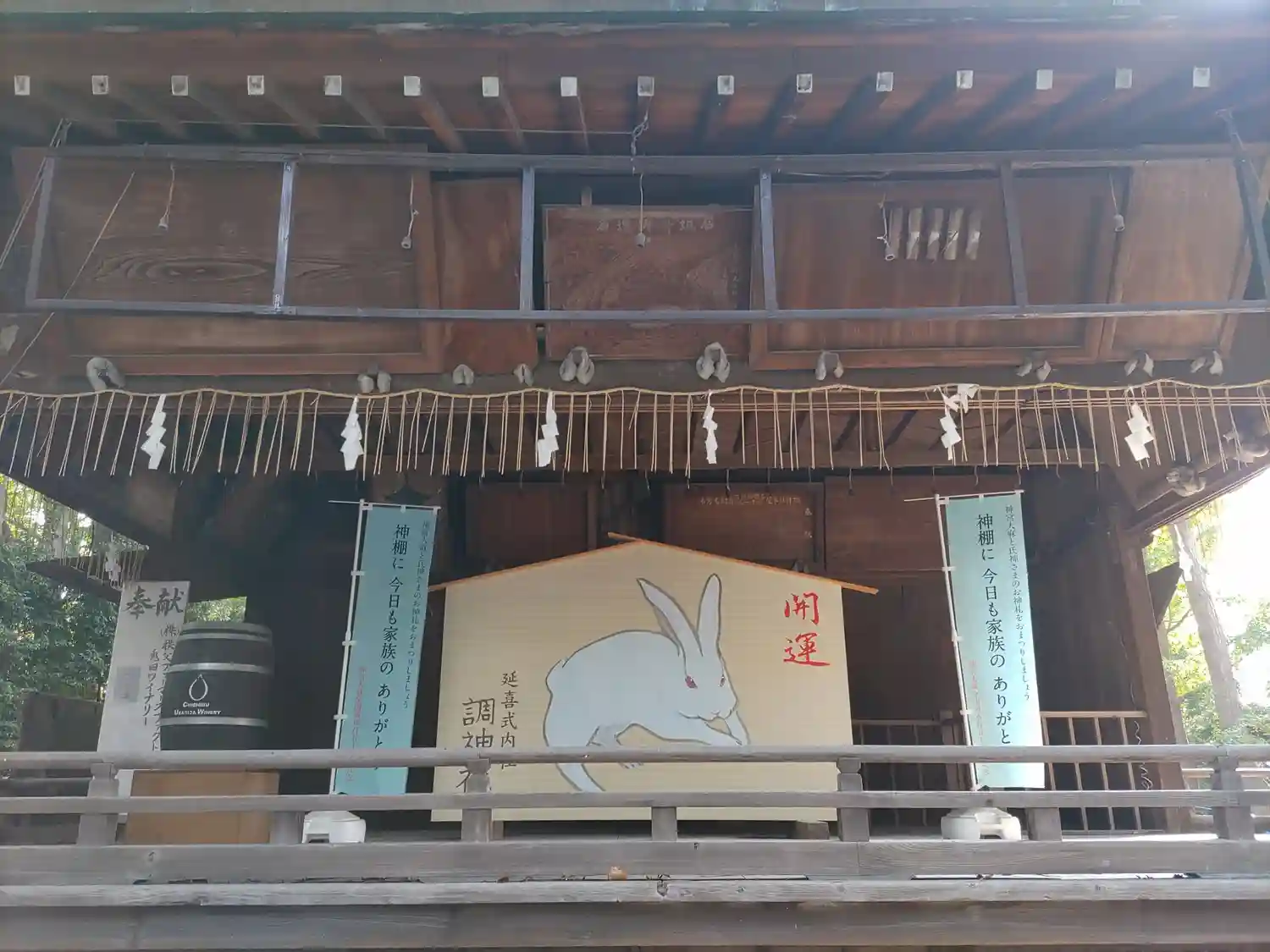 神楽殿の大きい卯の絵馬