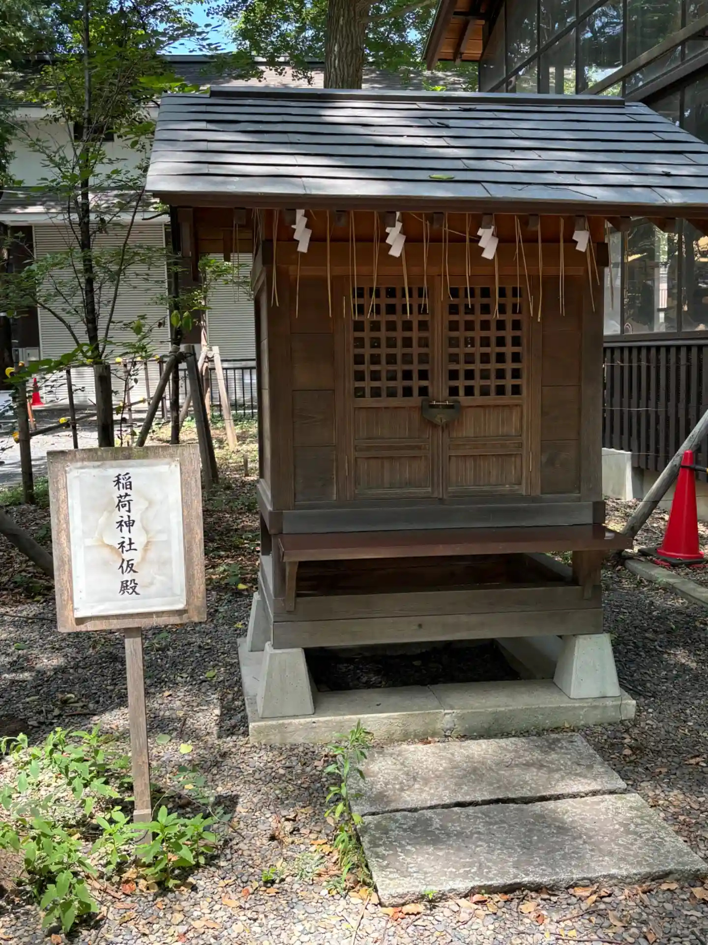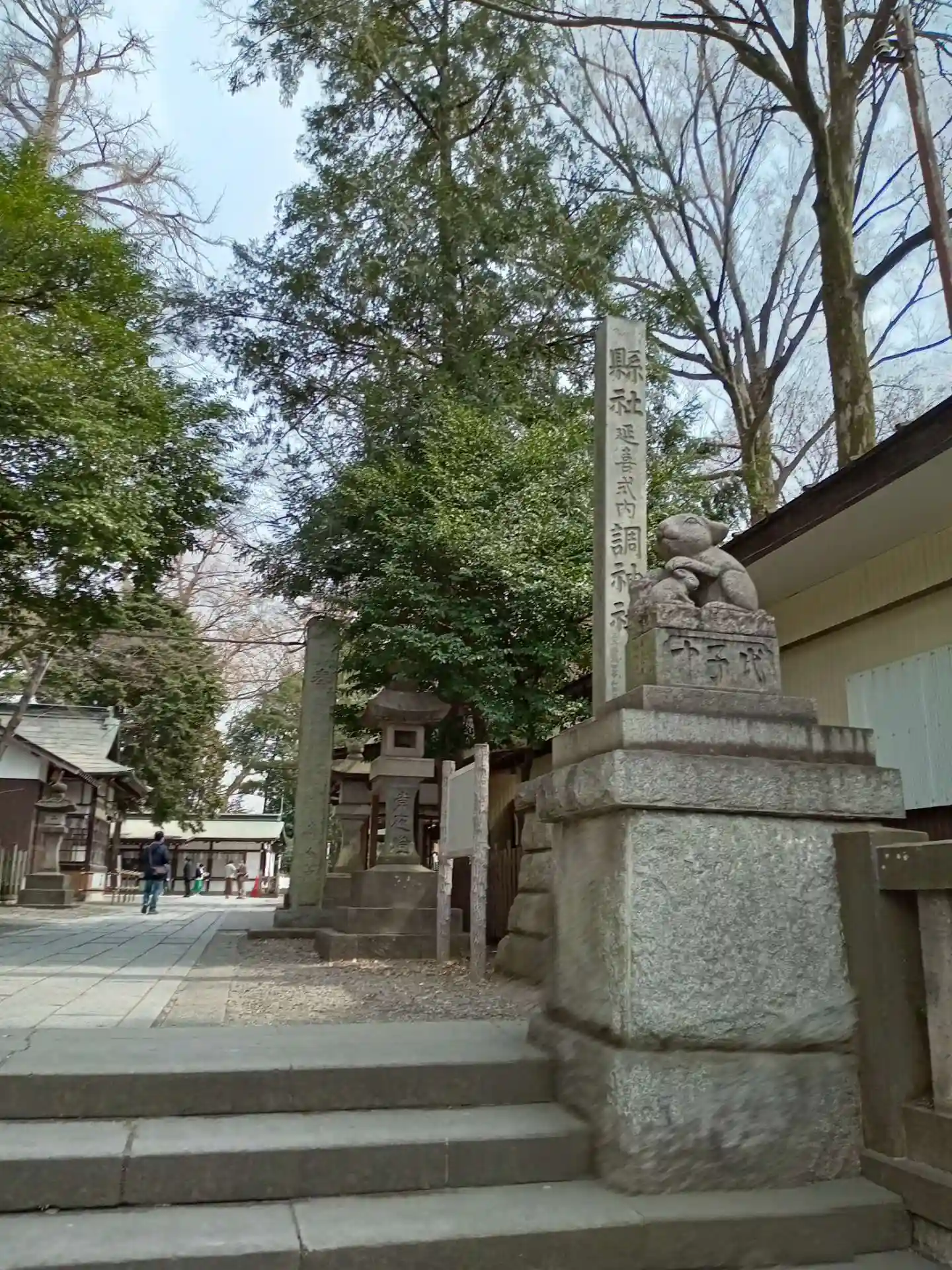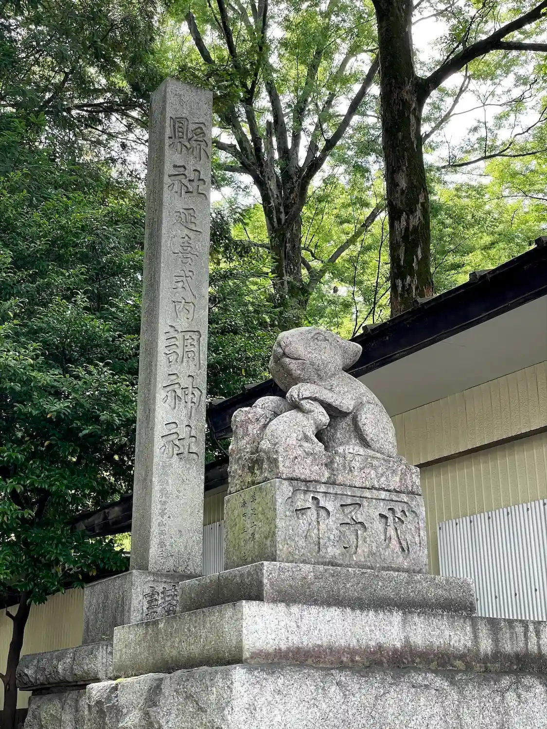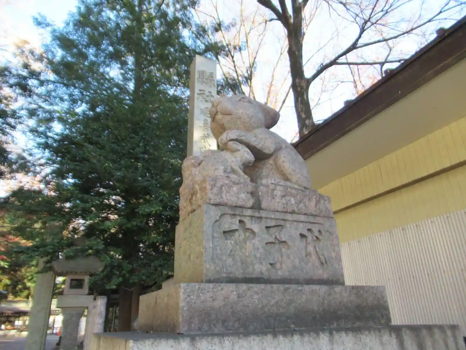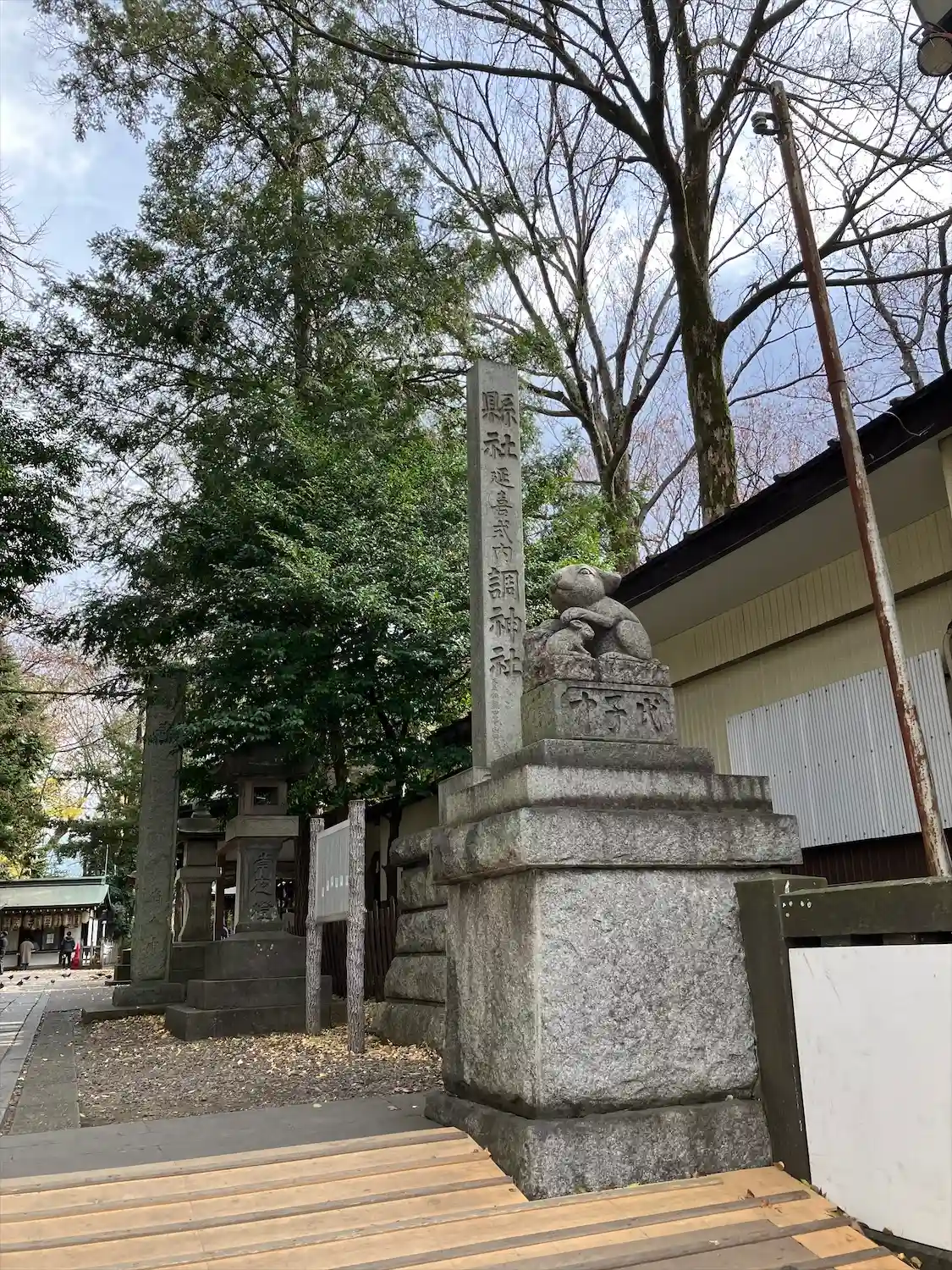 社号標と狛兎。