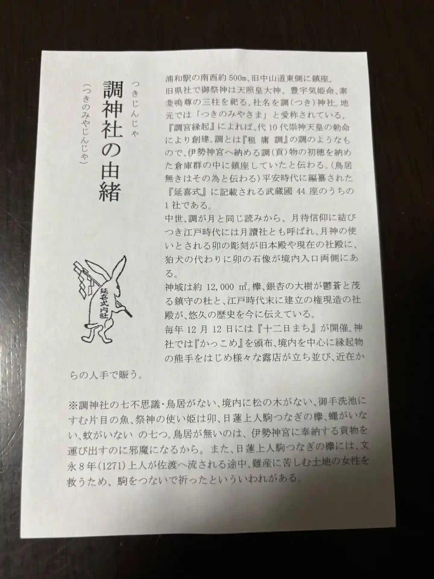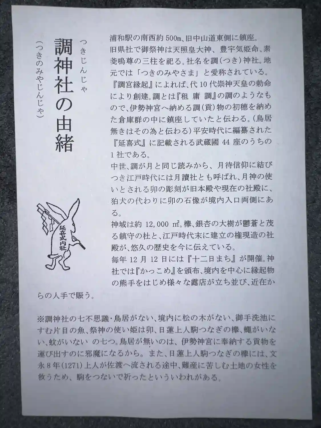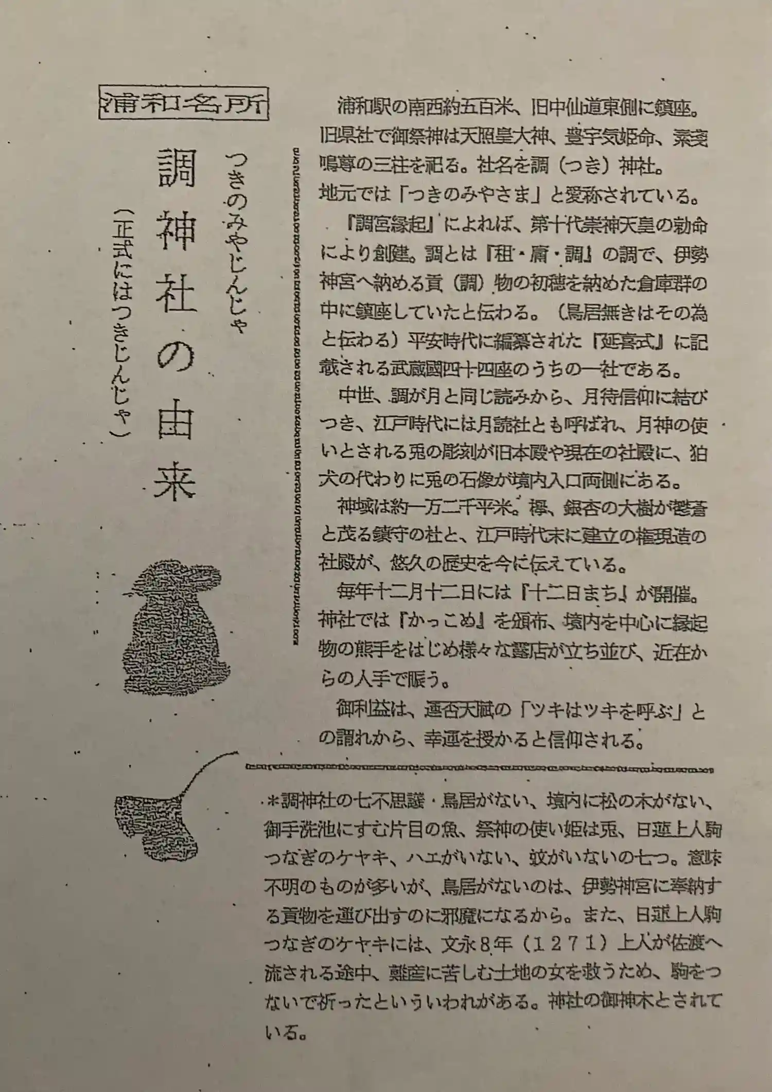 調神社と書いて「つきじんじゃ」。いたるところにウサギがいます。ツキがあるということで、勝負事のお願…