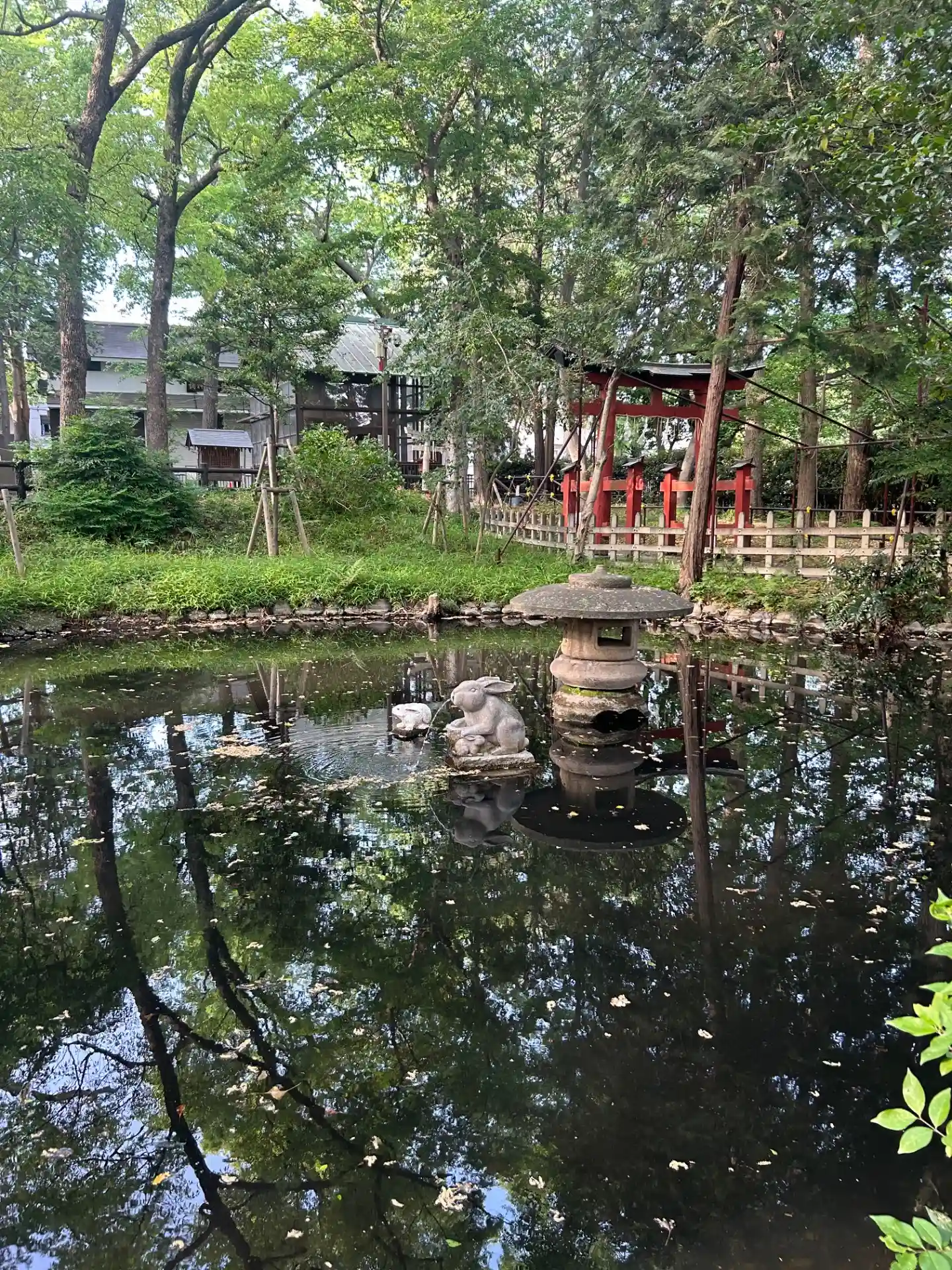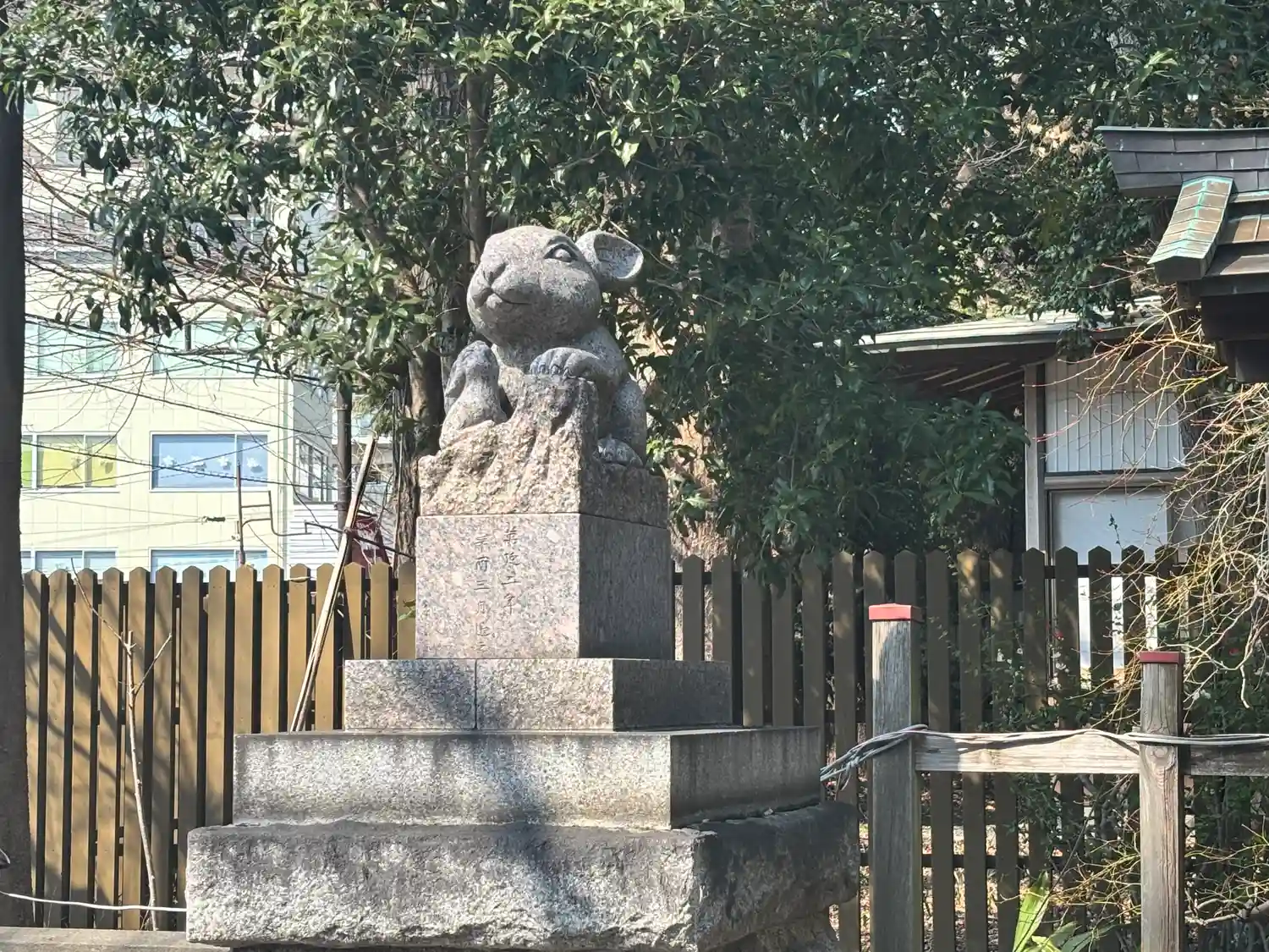 街中にある神社。ウサギがあちこちに!石のね!