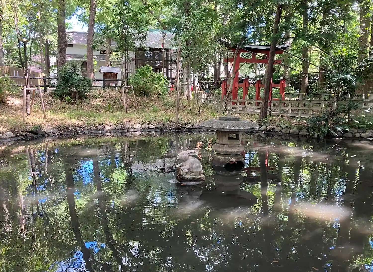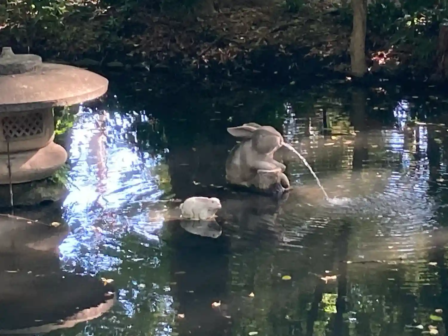 うさぎがお出迎え。暑い日でしたが、立派な木々が涼しさを届けてくれました。