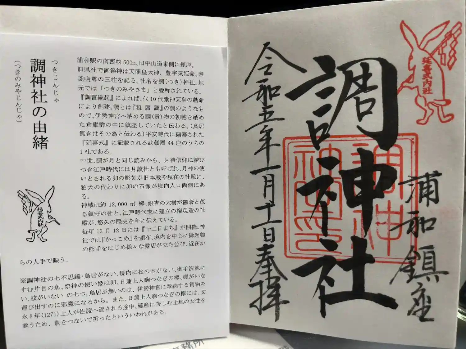 今使っている御朱印帳がそろそろ埋まりそうだったので、気になっていた調神社⛩へ🐇