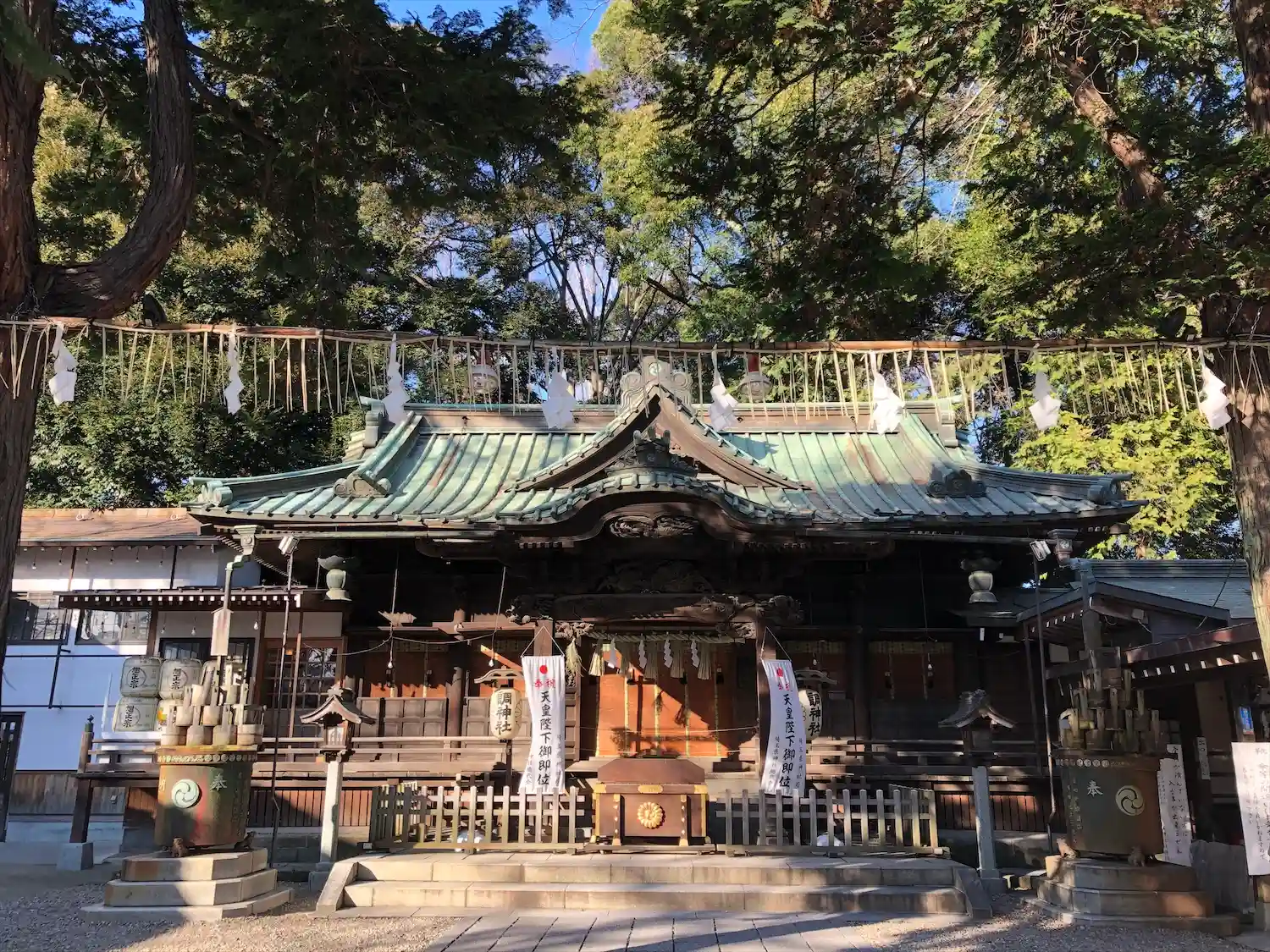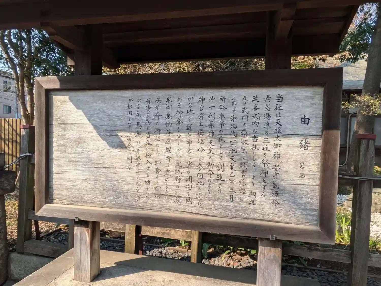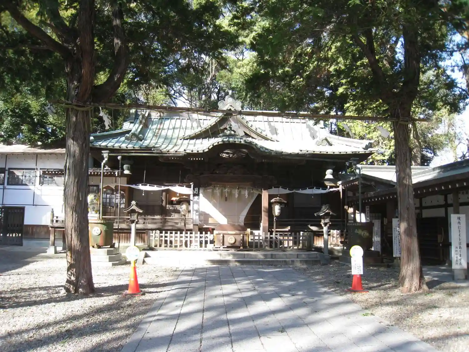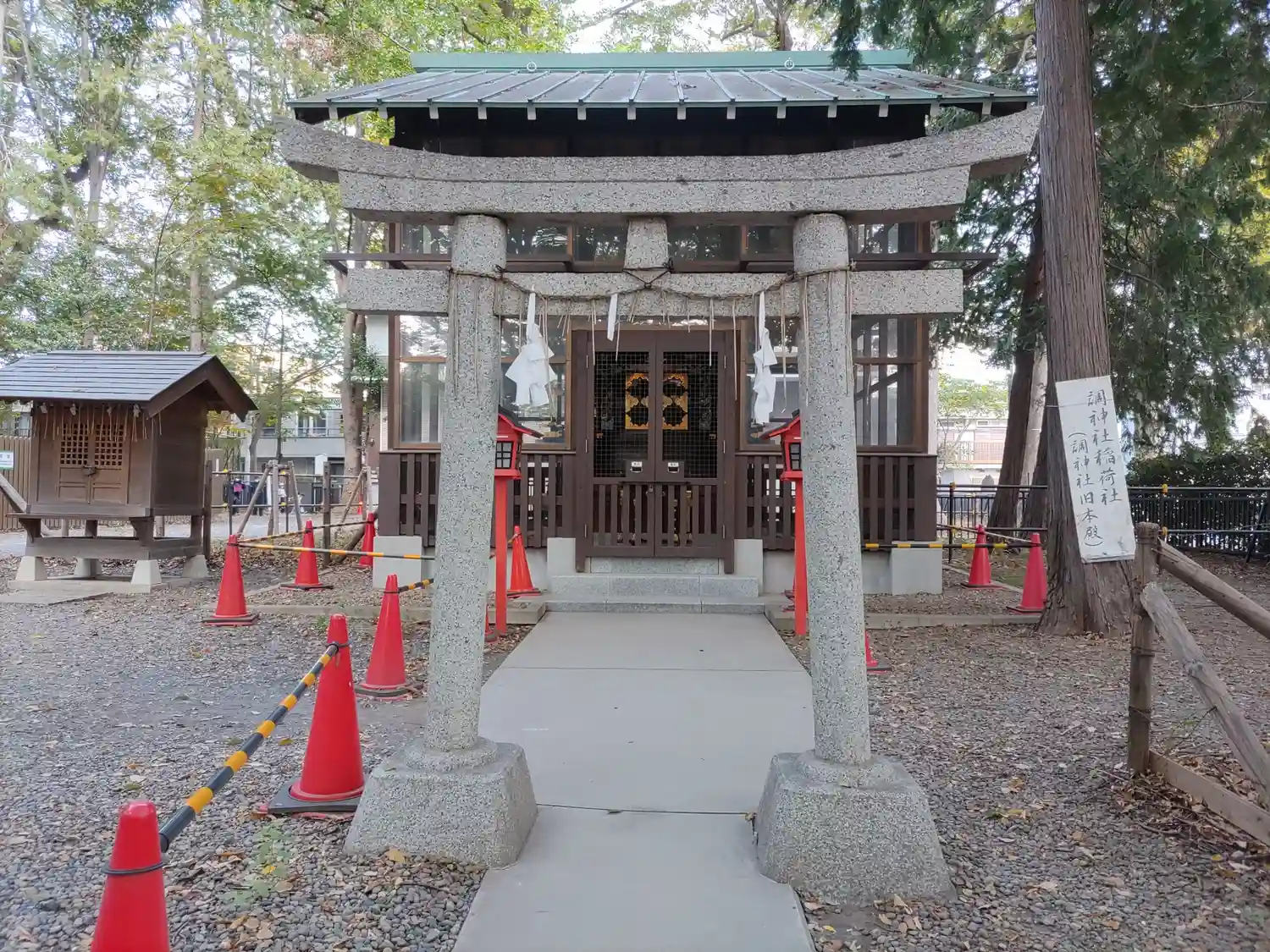 武蔵国式内社。鳥居が見当たらない神社。摂社としてある稲荷神社にはあるものの調神社自体には鳥居がなく…