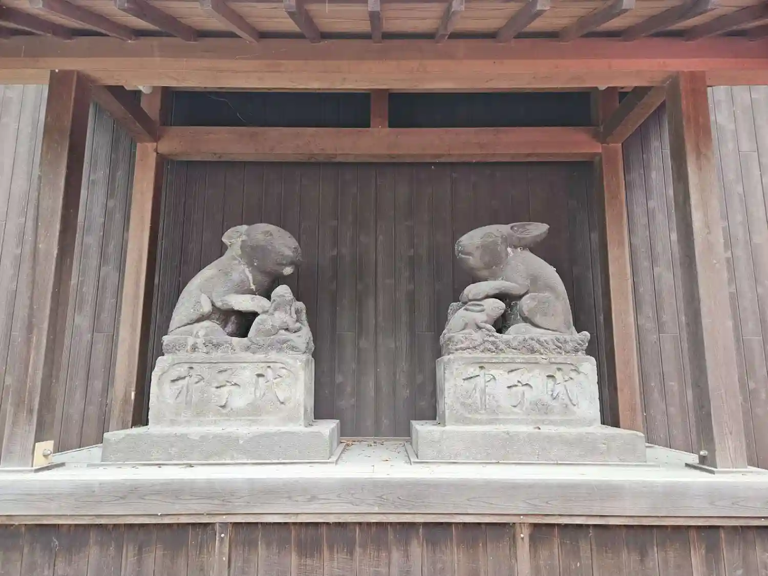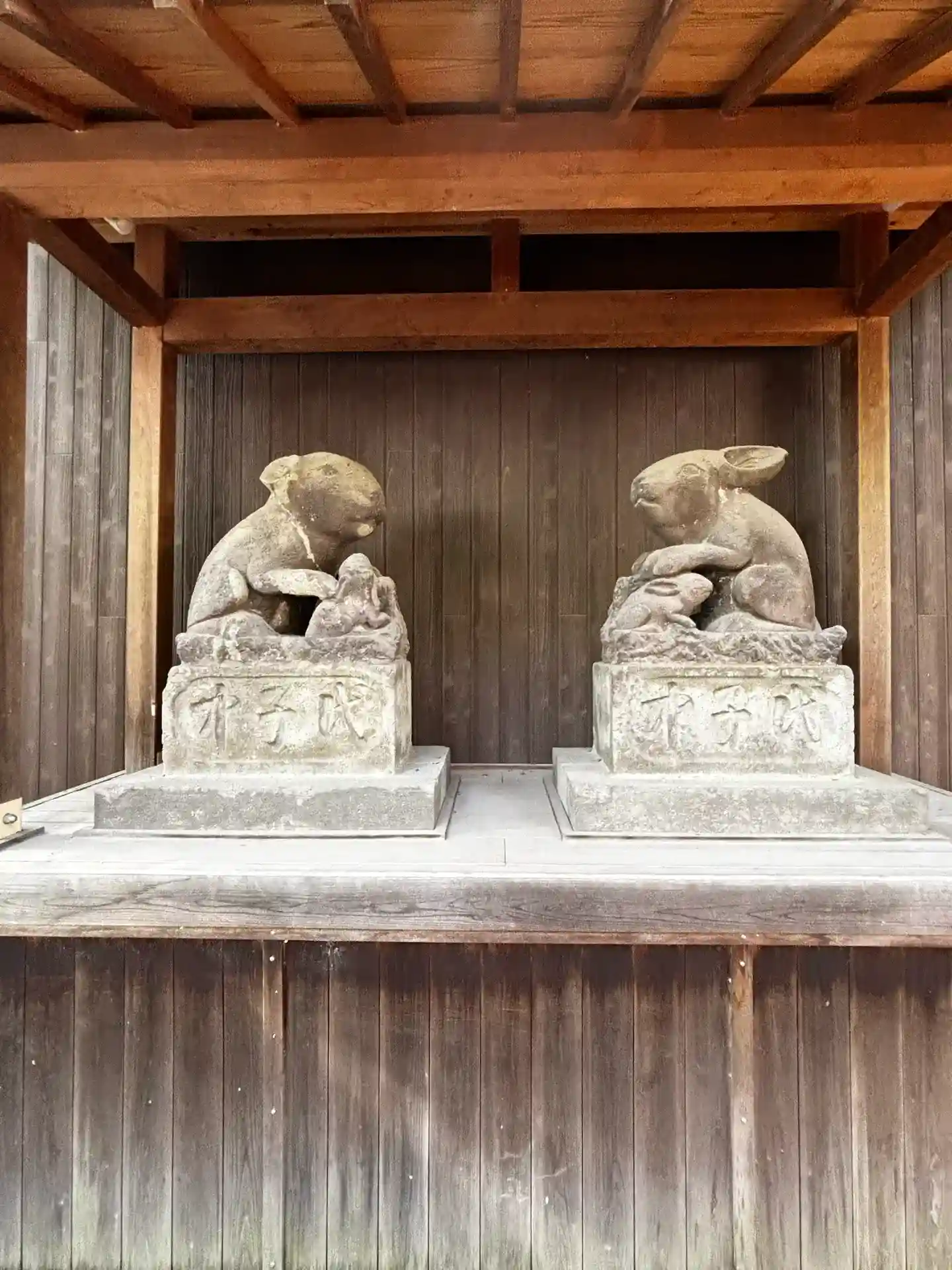 狛犬の代わりに狛卯?がいて卯年生まれのうさぎ好きおじさんとしては前か…