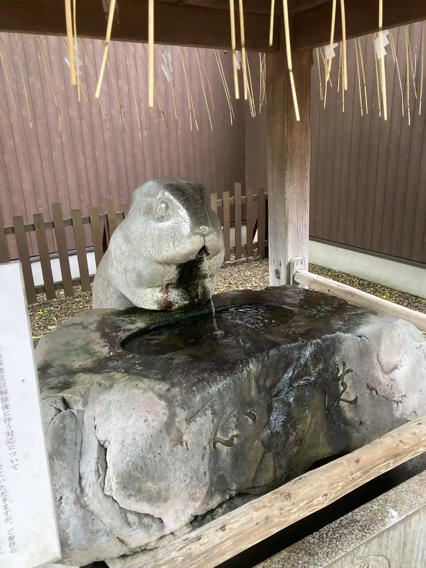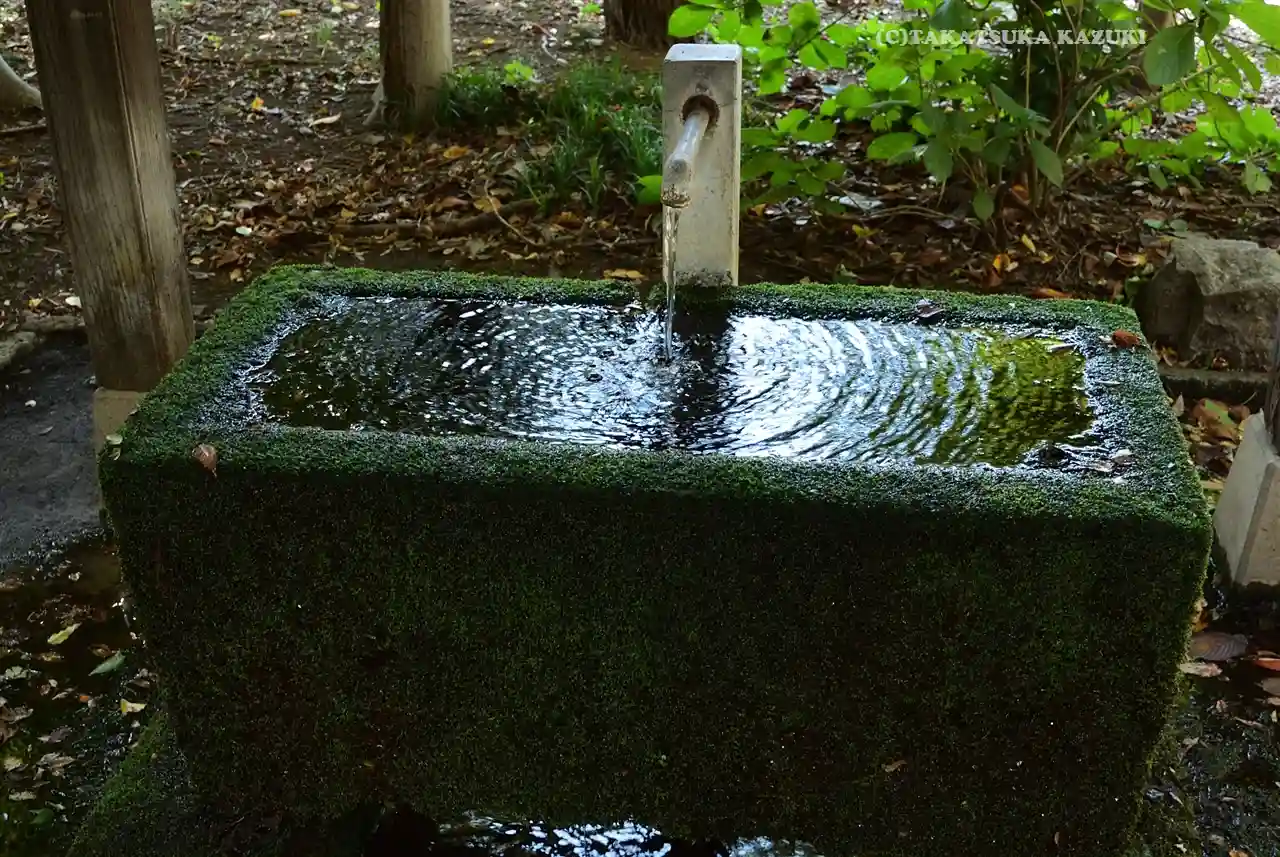 手水舎の柄杓はコロナの影響で撤去されています。