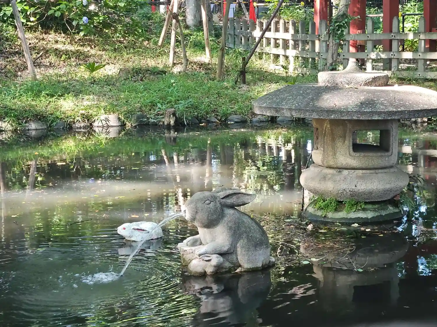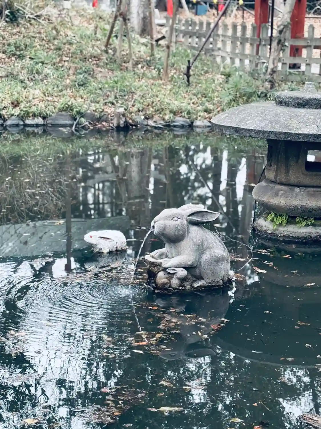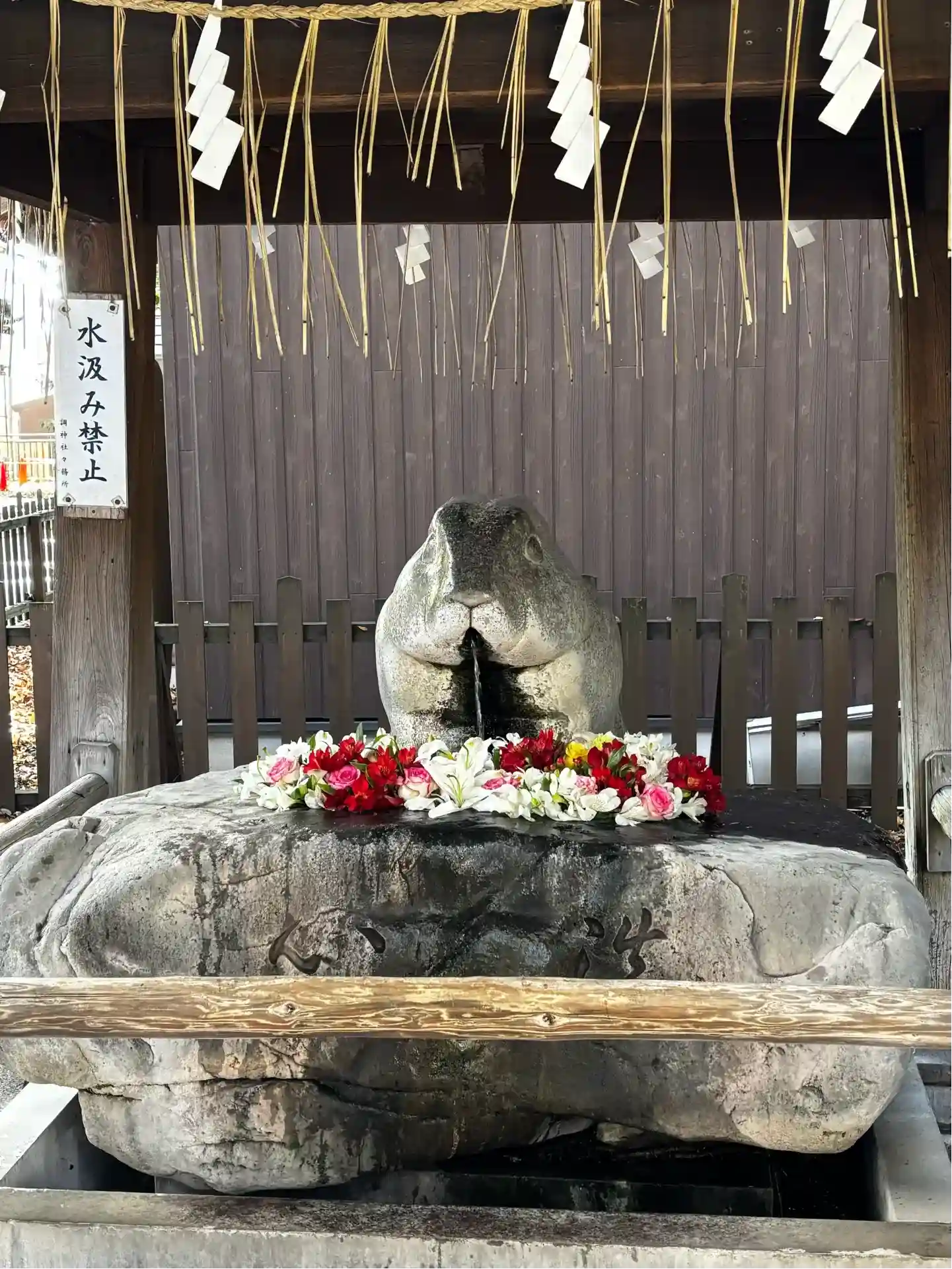 狛犬、手水に「うさぎ」が祀られています。