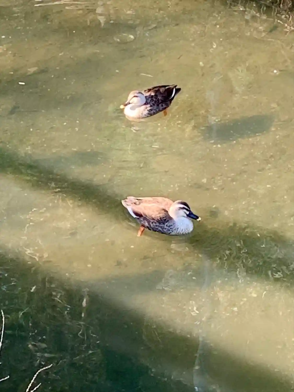 水鳥🦆が群れで泳いでいました。