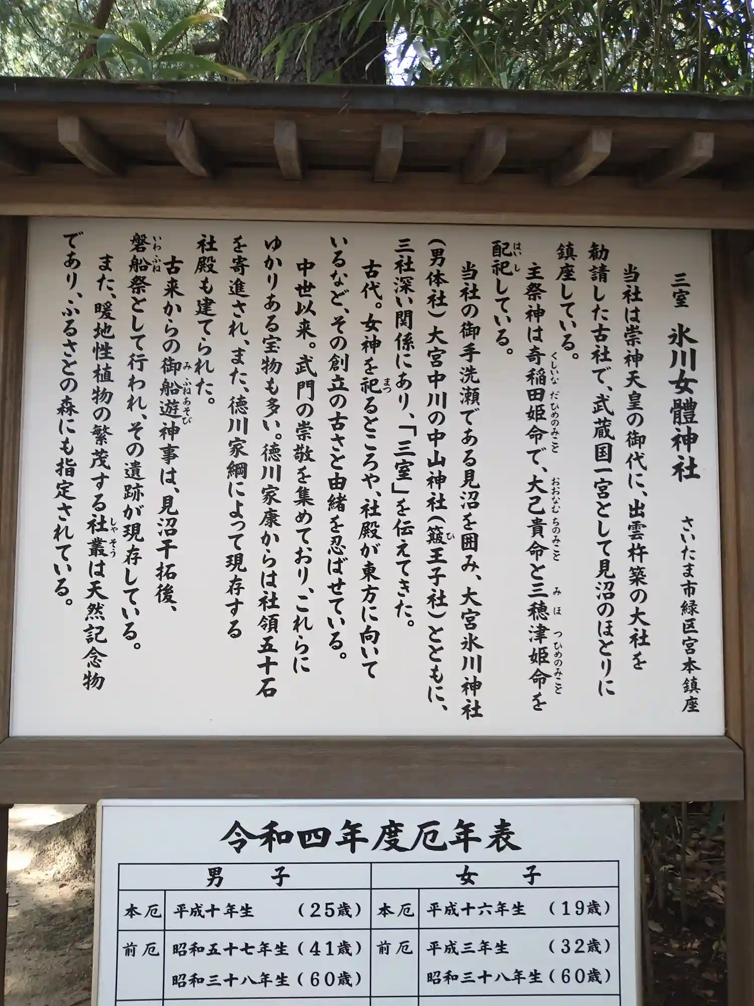 大宮氷川神社は、須佐之男命(すさのおのみこと)を御祭神とする男体社とされ、…