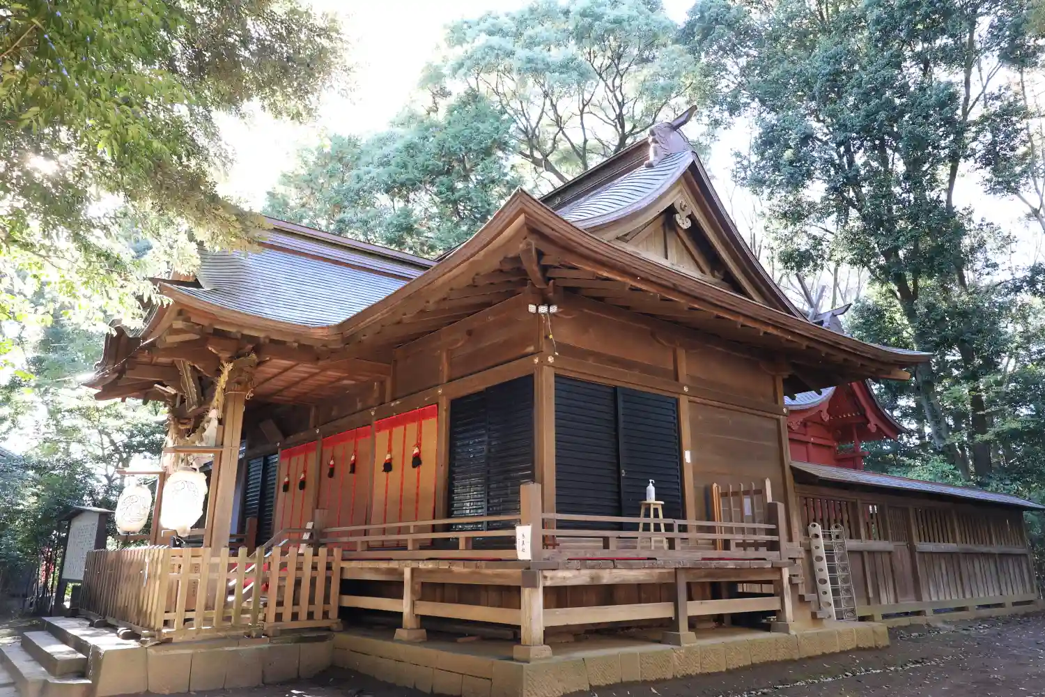 本殿の周りは、深い木々に覆われています。