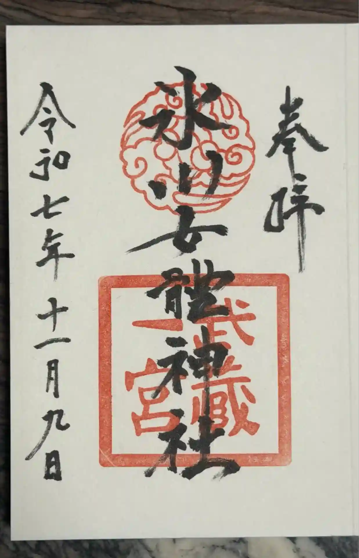 3種ある中、龍神様スタンプを選びました。書き置き