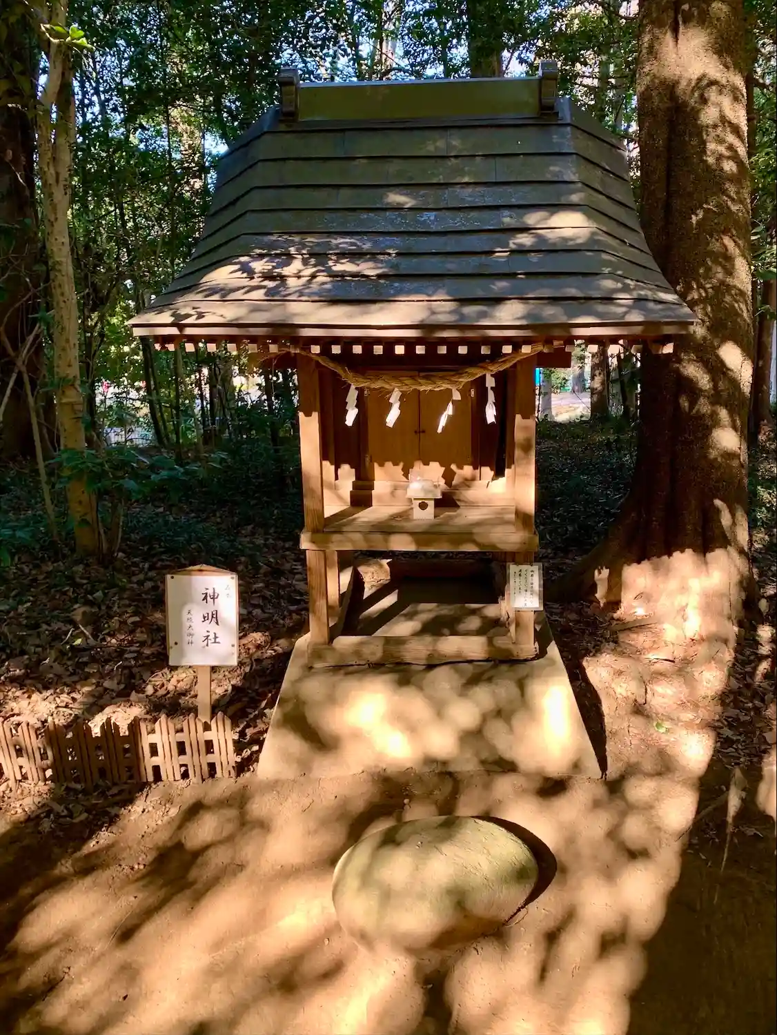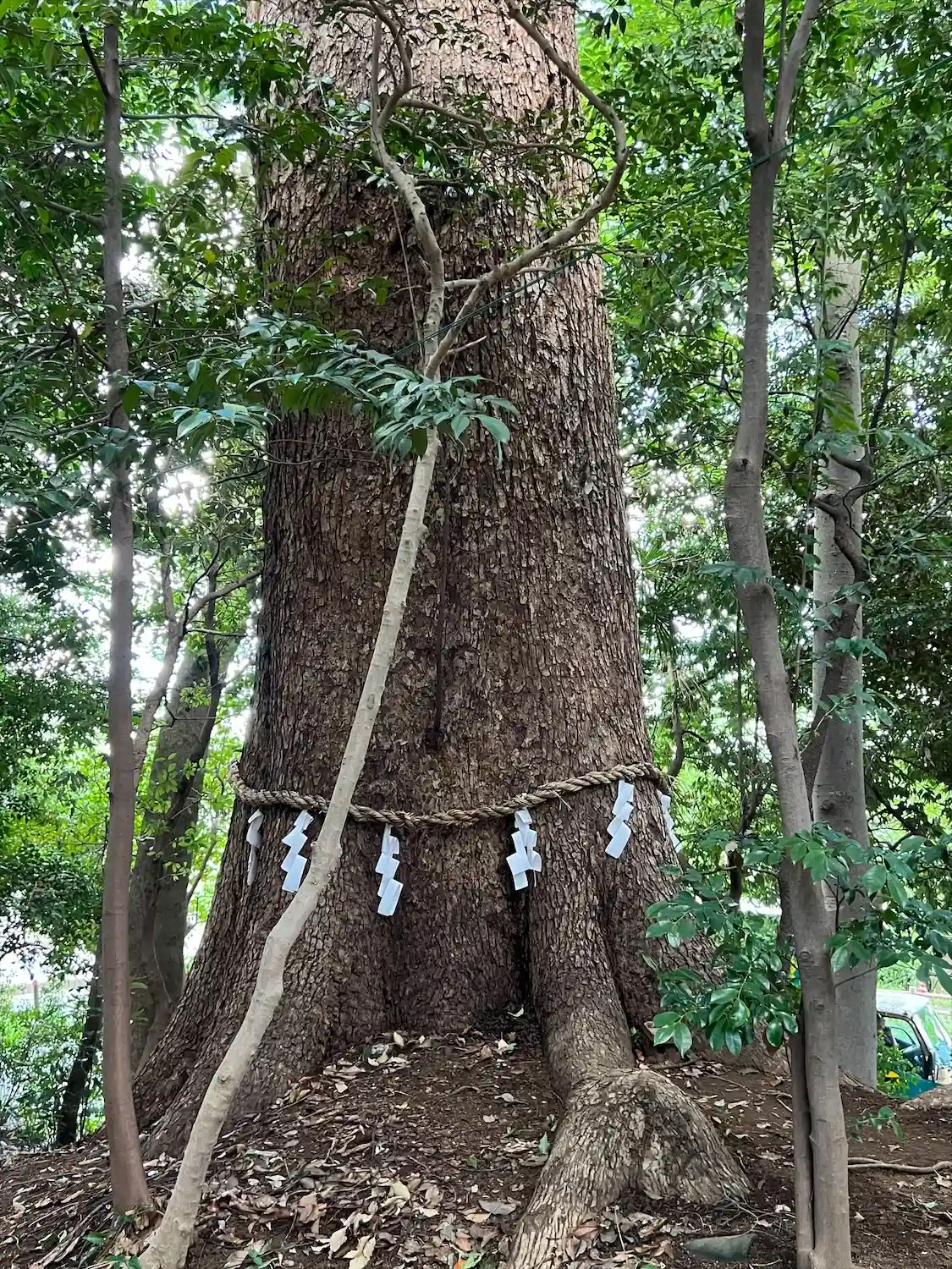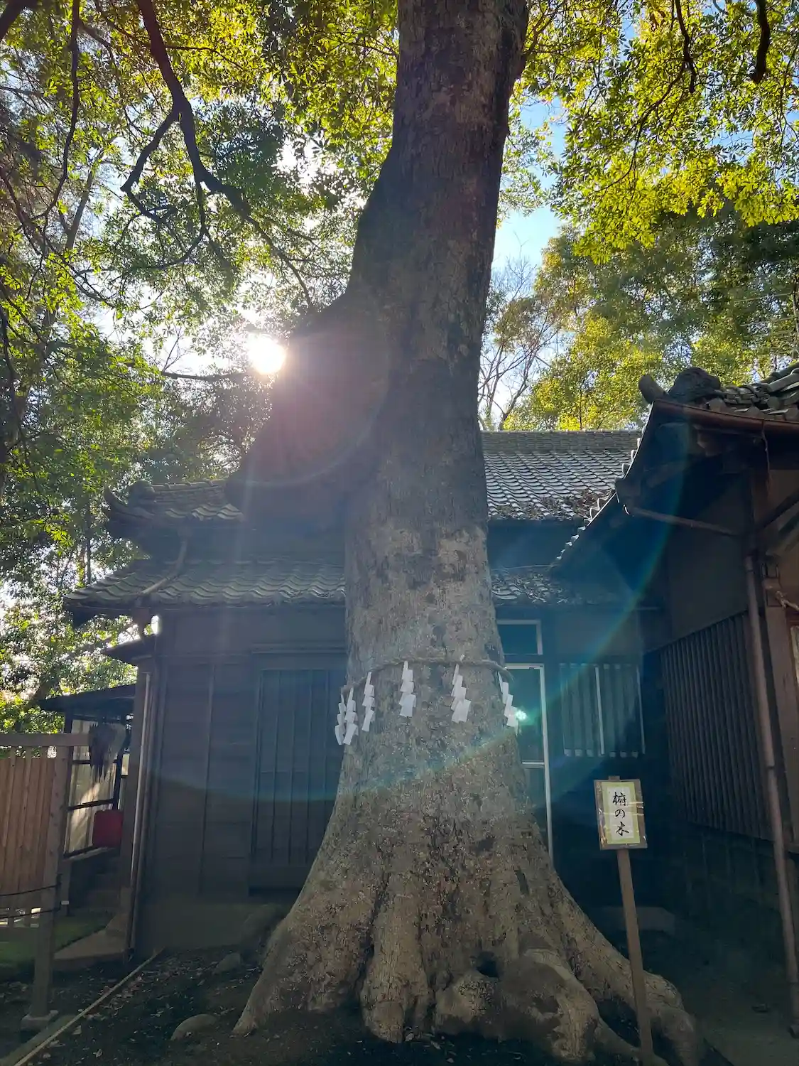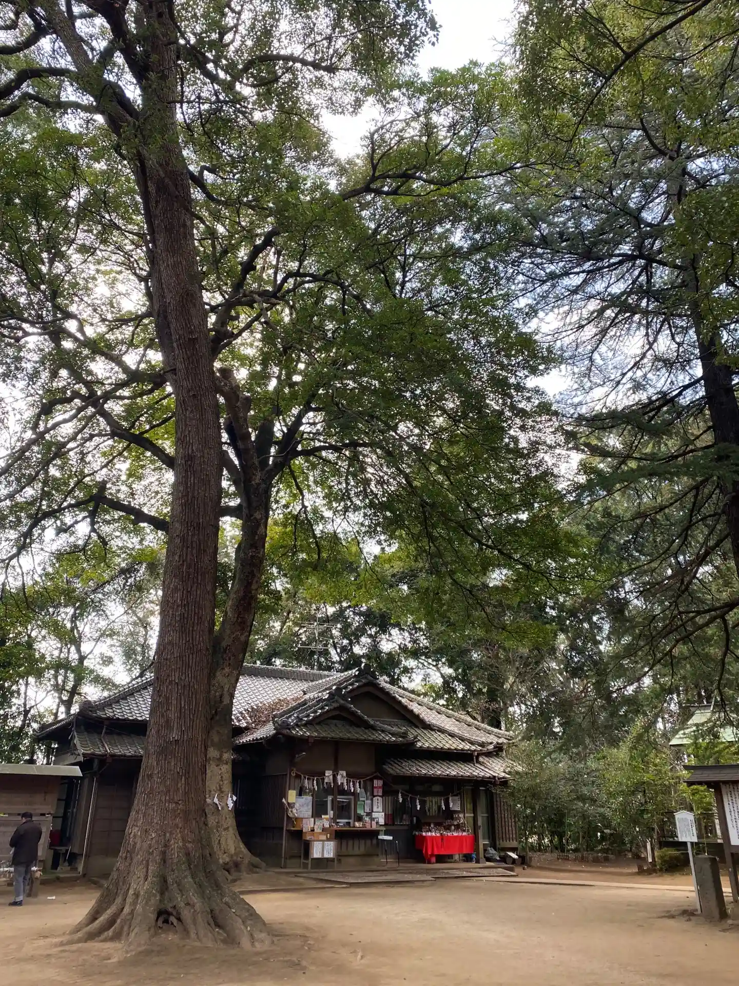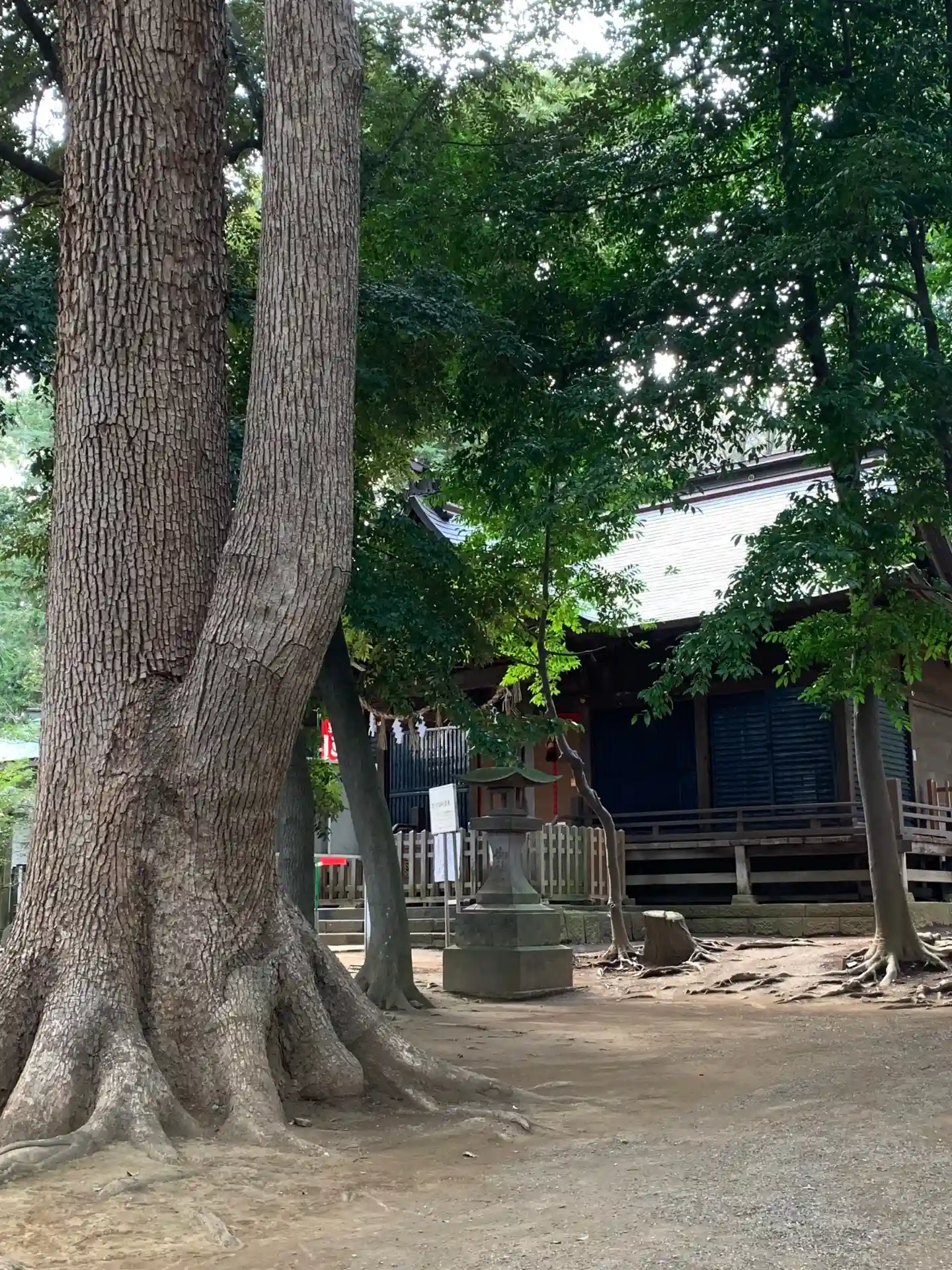 夫婦の木から拝殿を望み