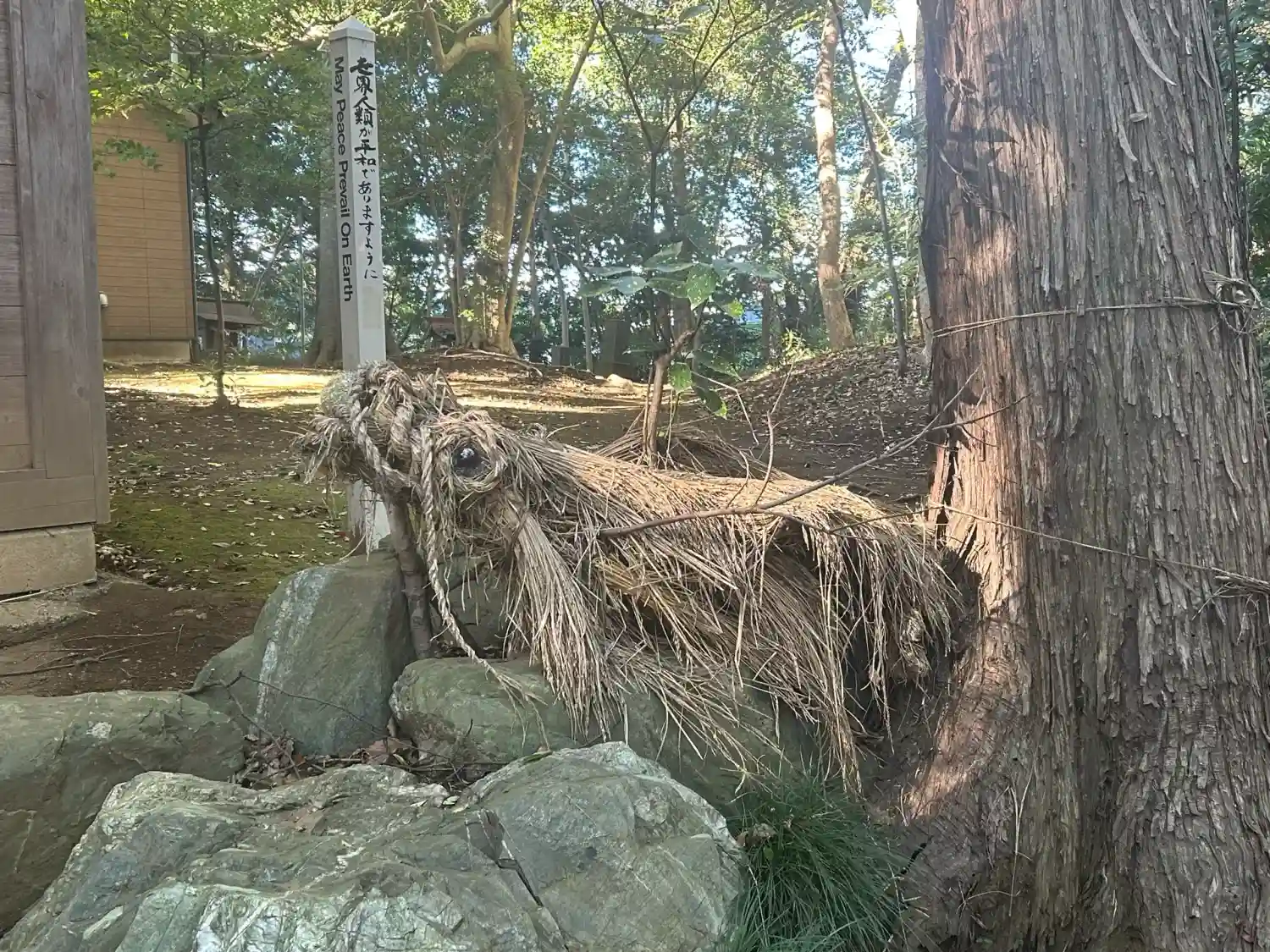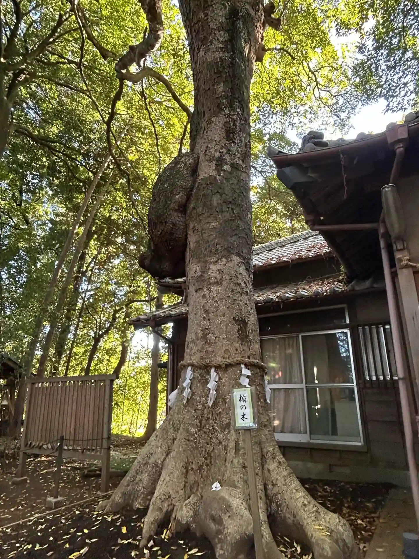 社務所の近くには熊の御神木があります