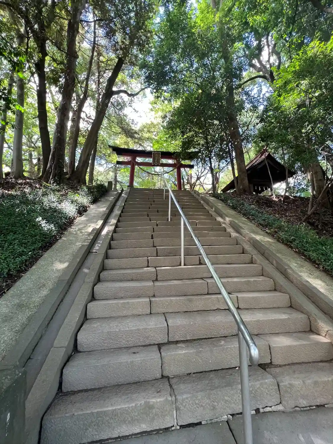 神社に向かう階段が素敵で、向かいには桜の咲く公園もあります。…