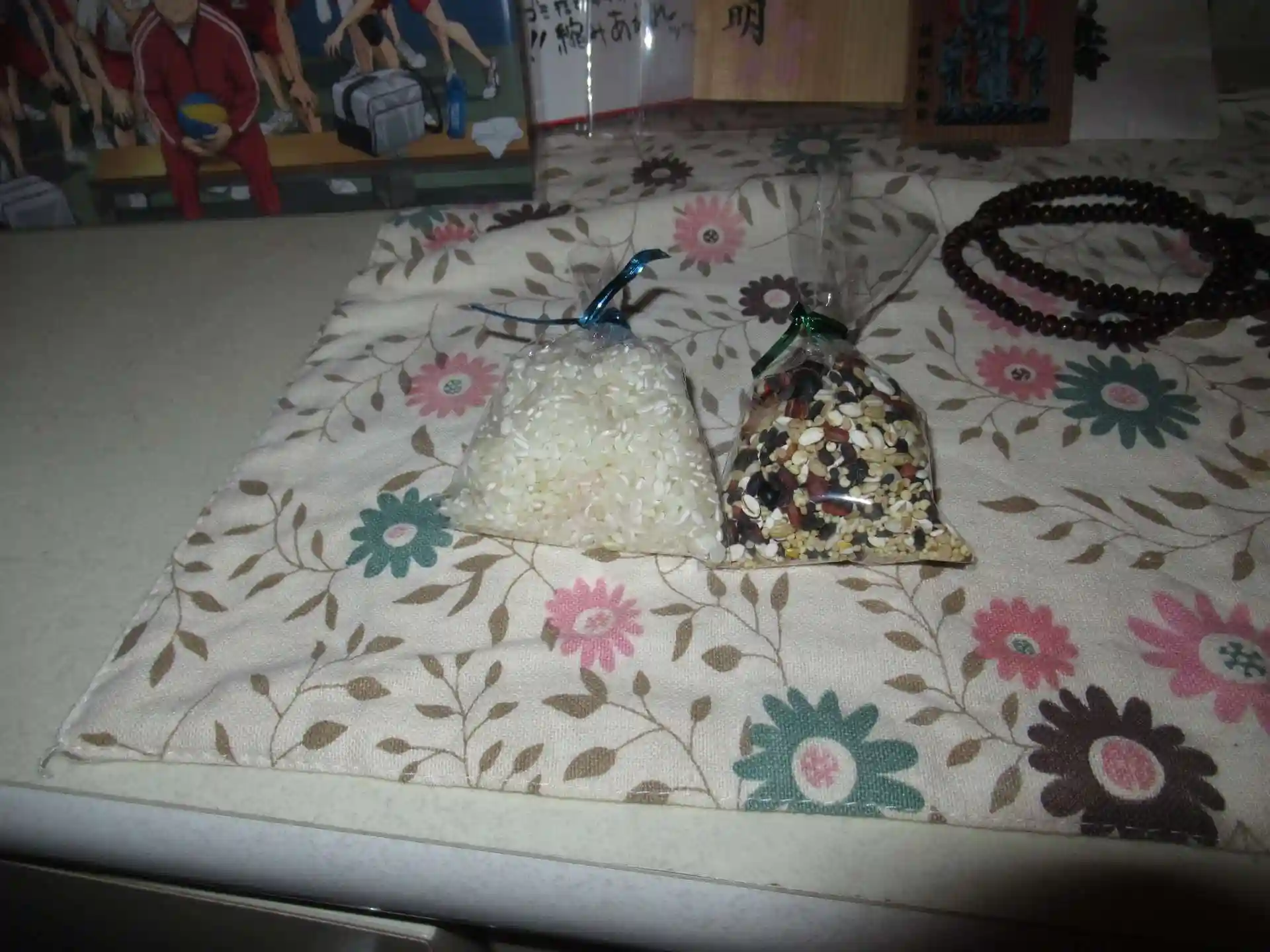 午前中のお護摩修行で配布したという、白米と五穀米をスタッフさんからいただきました。