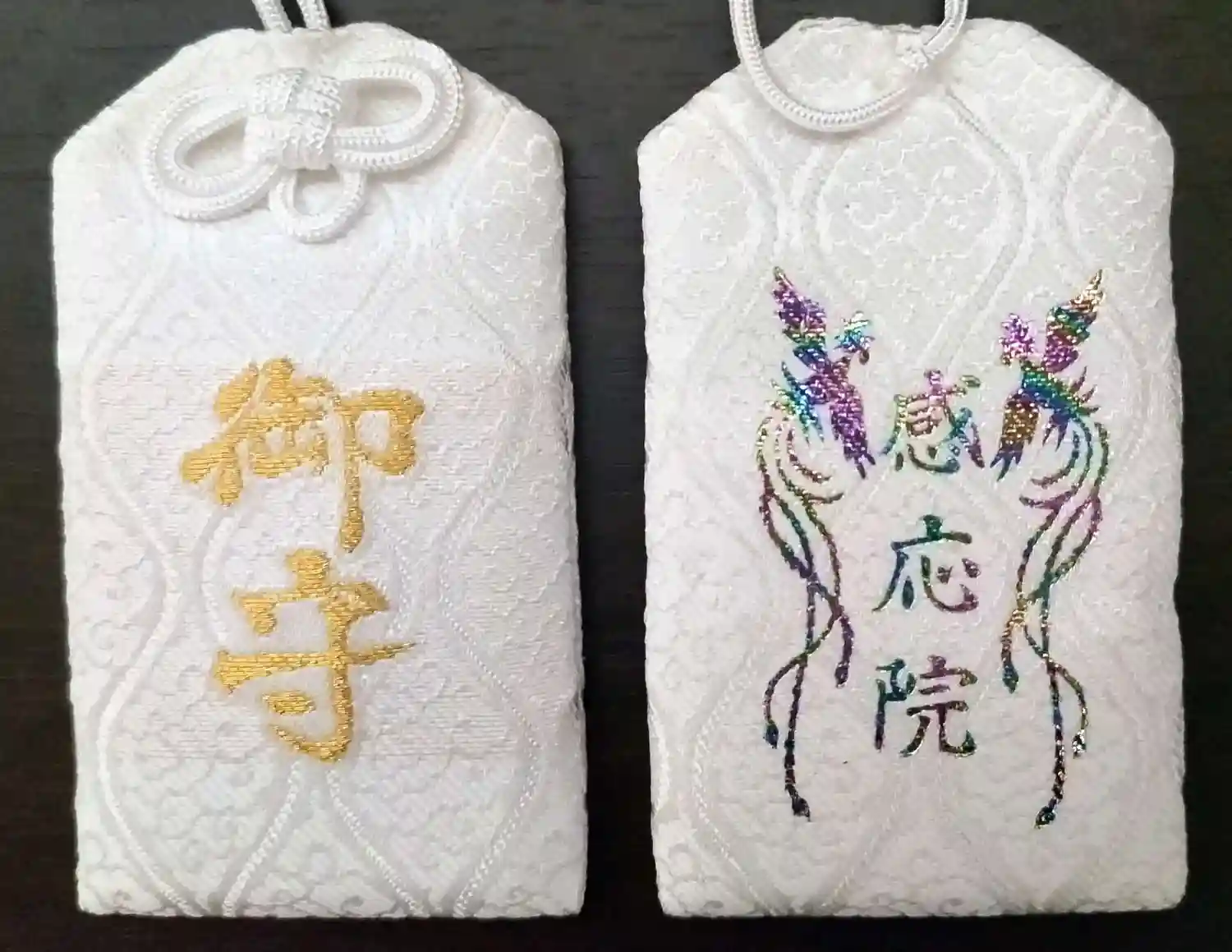 無病息災(不動明王と愛染明王合体)の最強白色御守りと弘法大師の身代わり御守です。