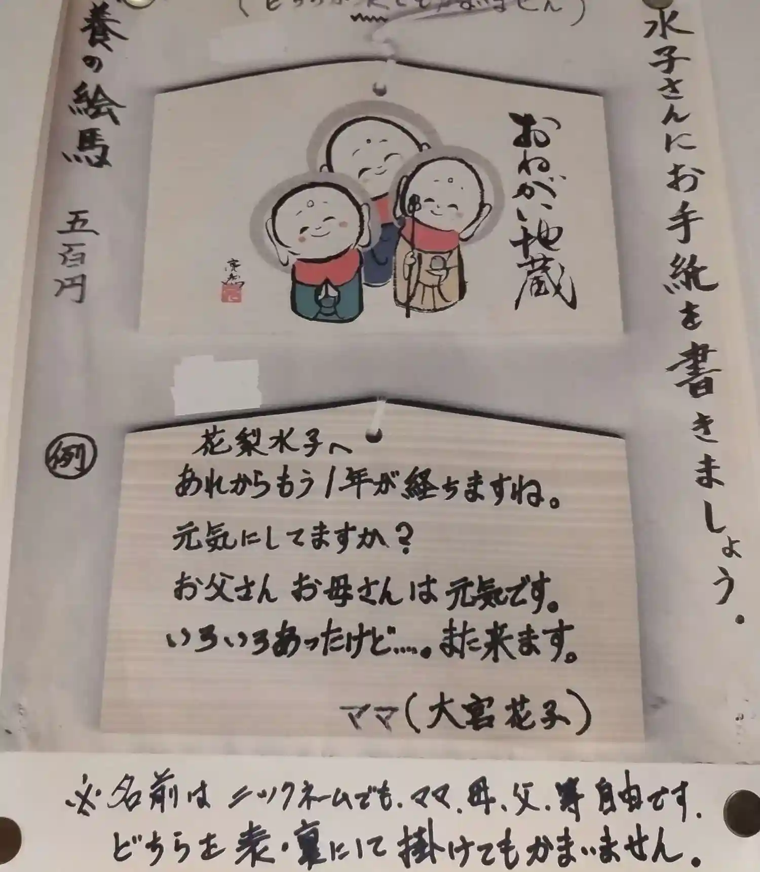 絵馬にて、お子さんに手紙が書けます。