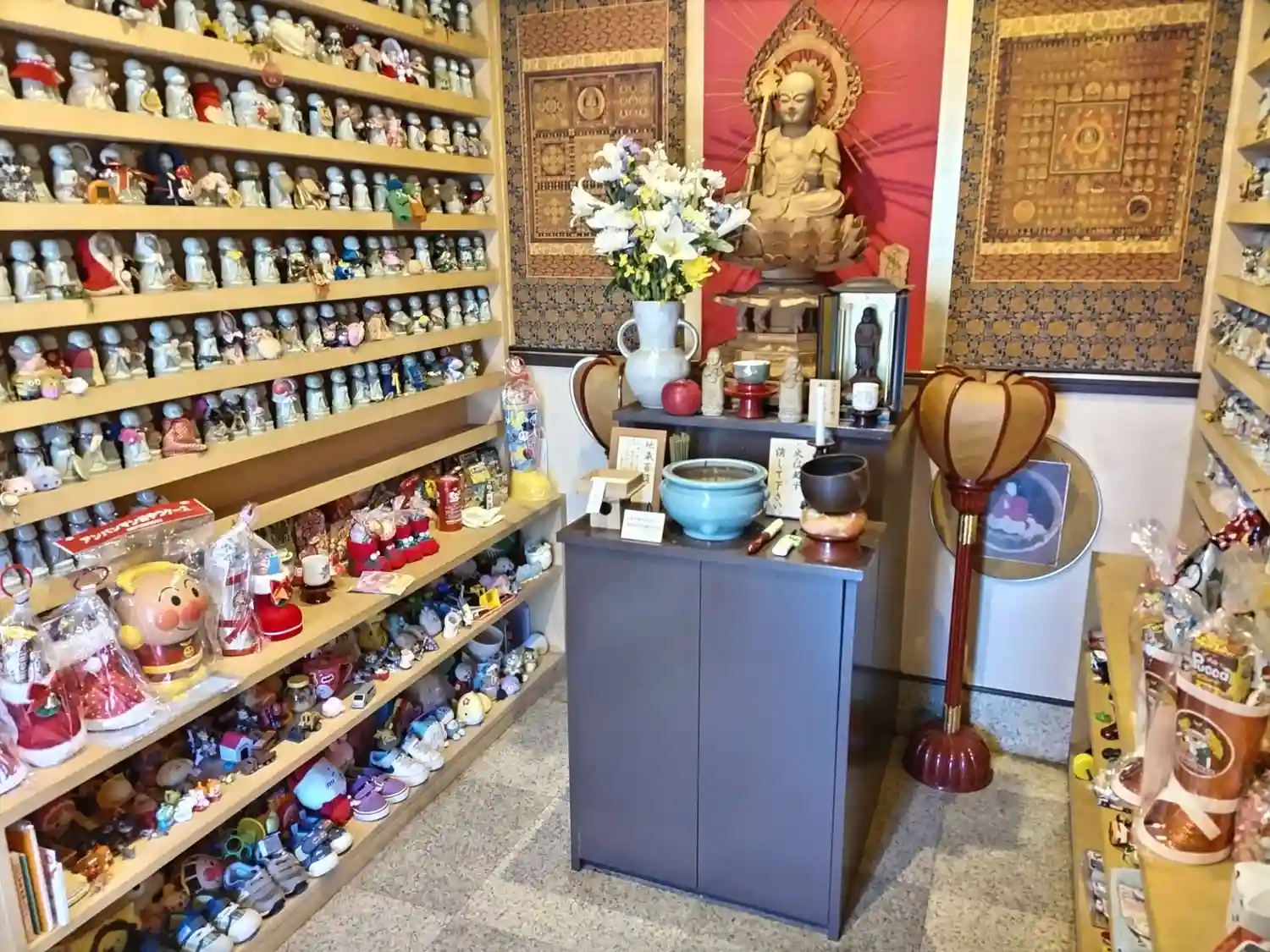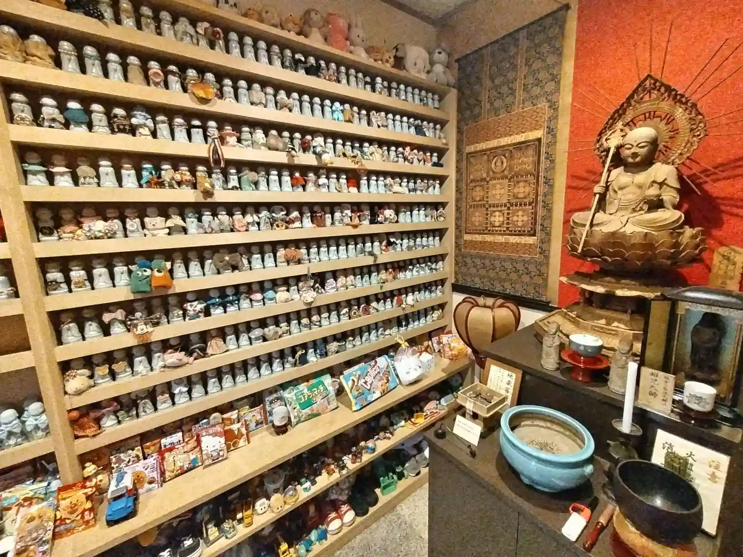 地蔵堂は水子地蔵さんでぎっしり。みんながお友達。お菓子やおもちゃも一杯です。