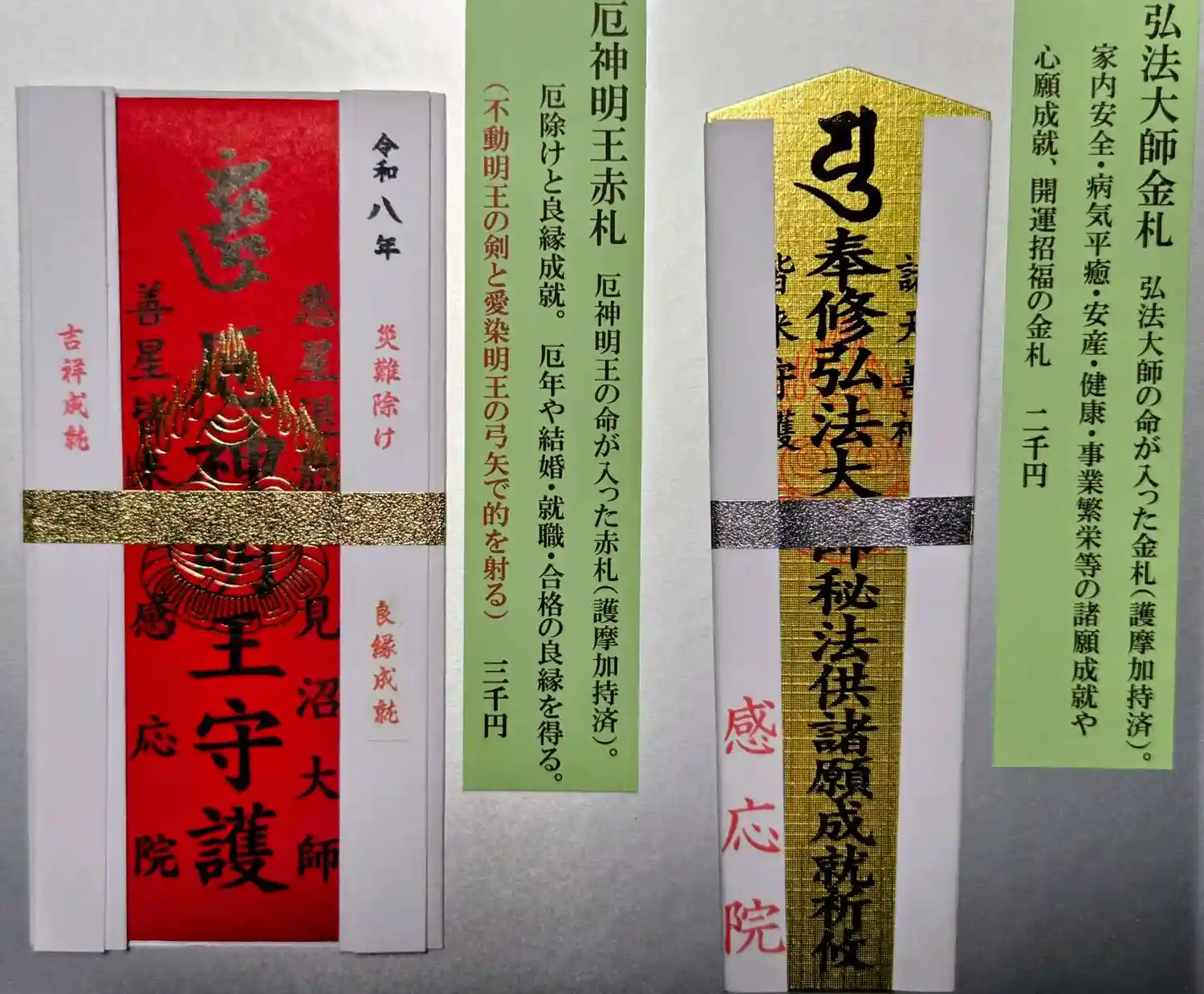 大札は、弘法大師・不動明王・愛染明王の三尊の魂が入った強力な御札です。