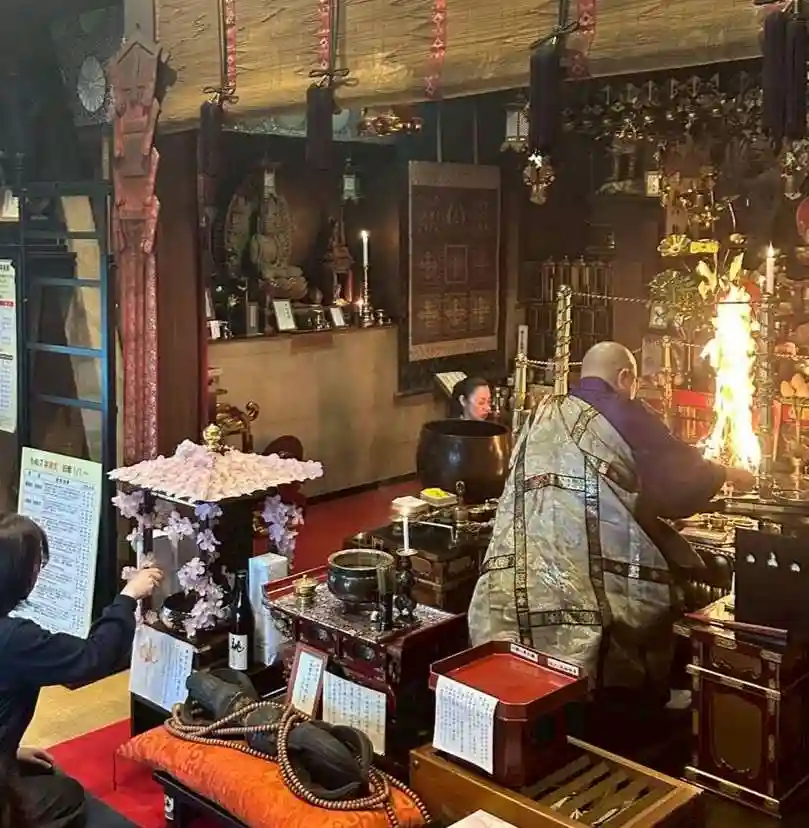 護摩終了後、内陣に入って仏・神様にご参拝下さい。希望者に開運の邪魔祓いします(無料)