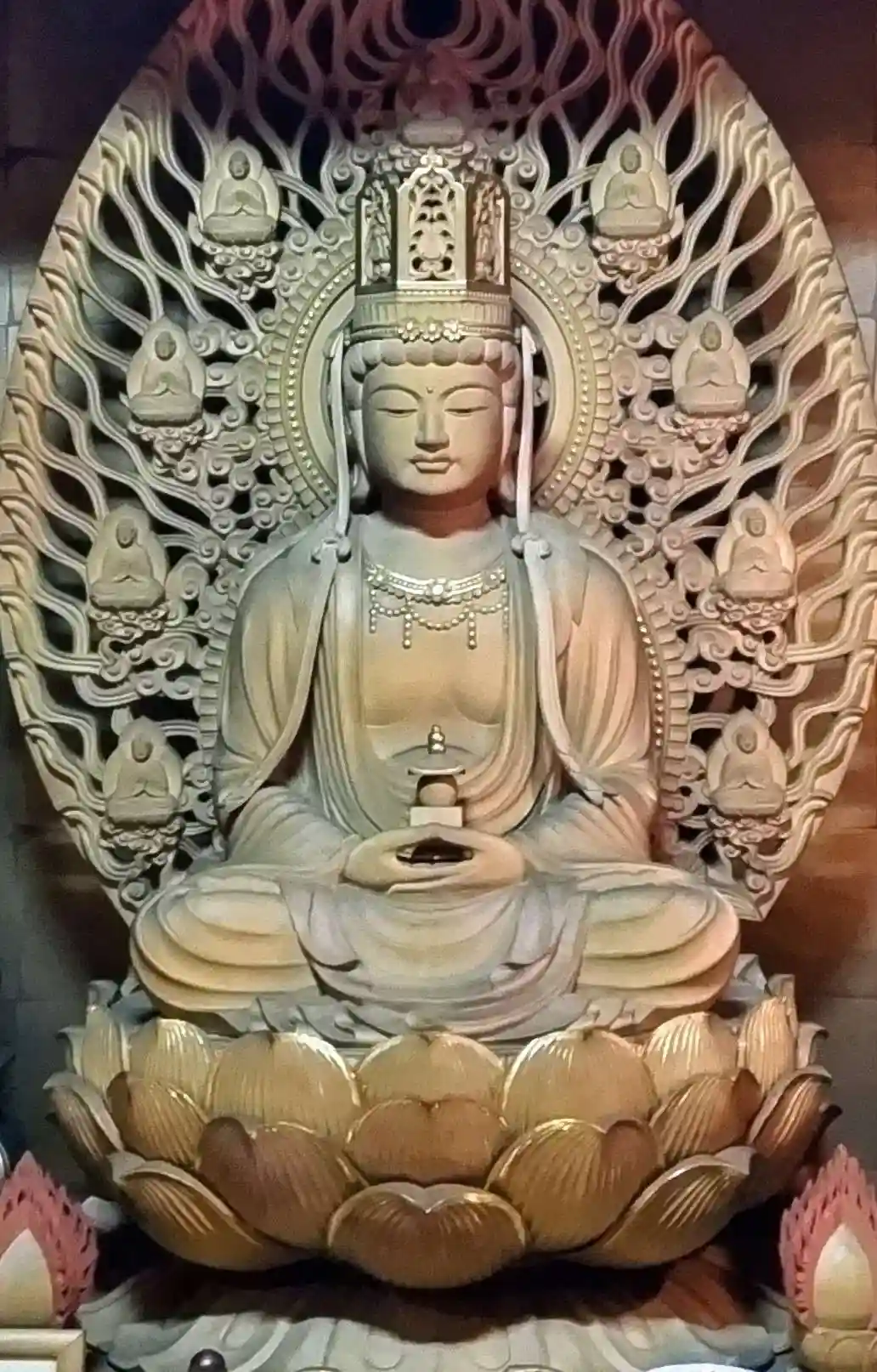 美顔で人気の千手観音さまです。護摩供養後、内陣に入って目の前で参拝して下さい。