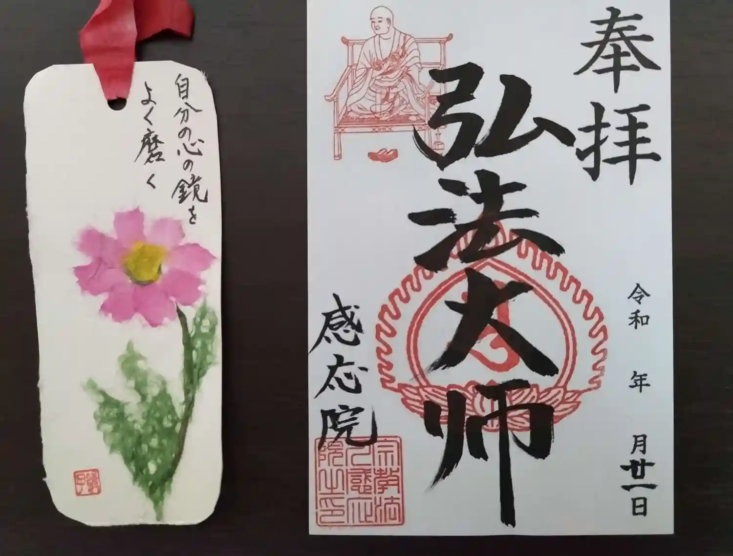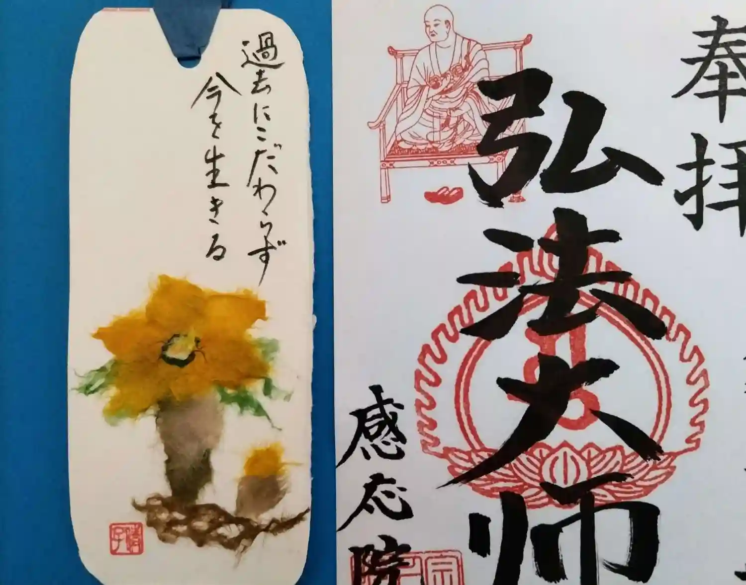 お大師様お姿入り限定御朱印と押し花栞(大師の言葉入り)