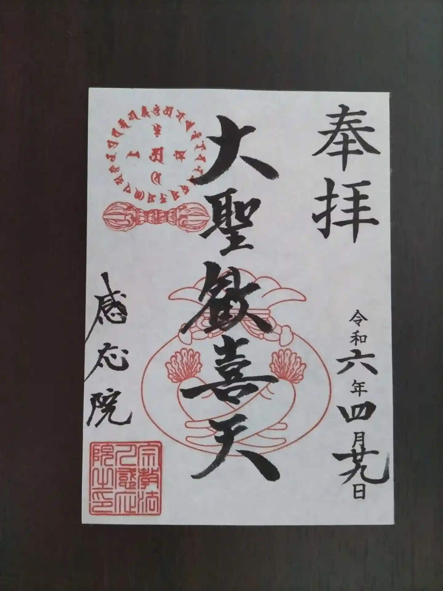 毎月1日のみ聖天様の御朱印を授与してます